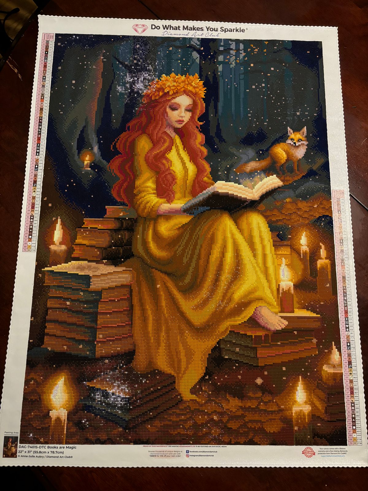 The colors of this painting speaks Autumn to me. Her hair is a gorgeous red and the fox in the background is adorable. Looking forward to doing this diamond art to kick off my favorite season!