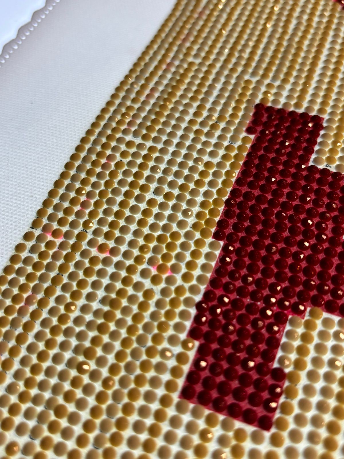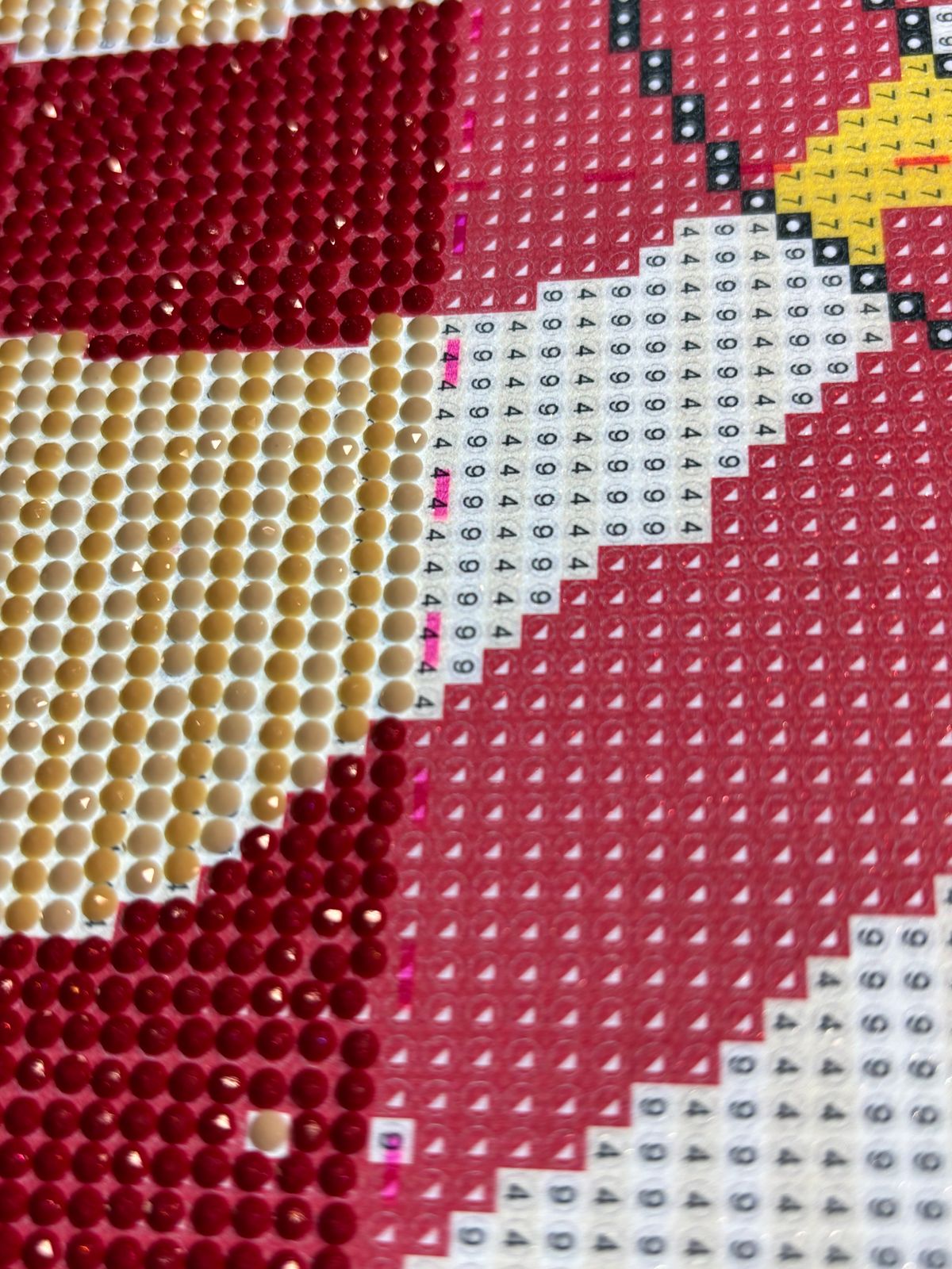 I have never been so frustrated with a DAC canvas. Part was what did I expect with the size of the canvas and only 12 colors, three being shades of beige. This happened to be one of the canvases with perforated cover sheet that had the lines marked with pink. I understand from customer service they knew there was an issue with the lines marked on the wrong side so they bled on to the canvas. Since this is round drills the pink shows. Especially since the canvas when completed is 75% beige. I’m a once I’ve started a project I have to complete it even if just to roll it up and never look at I again. It was not really an option to return since it was kitted and over half done once I realized the lines were not fading. So DAC offered a $15 or 1500 point credit. Kind of sad based on cost and inconvenience. I hope they reconsider the idiot lines. If people really can’t tell the edges use washi as it always works.