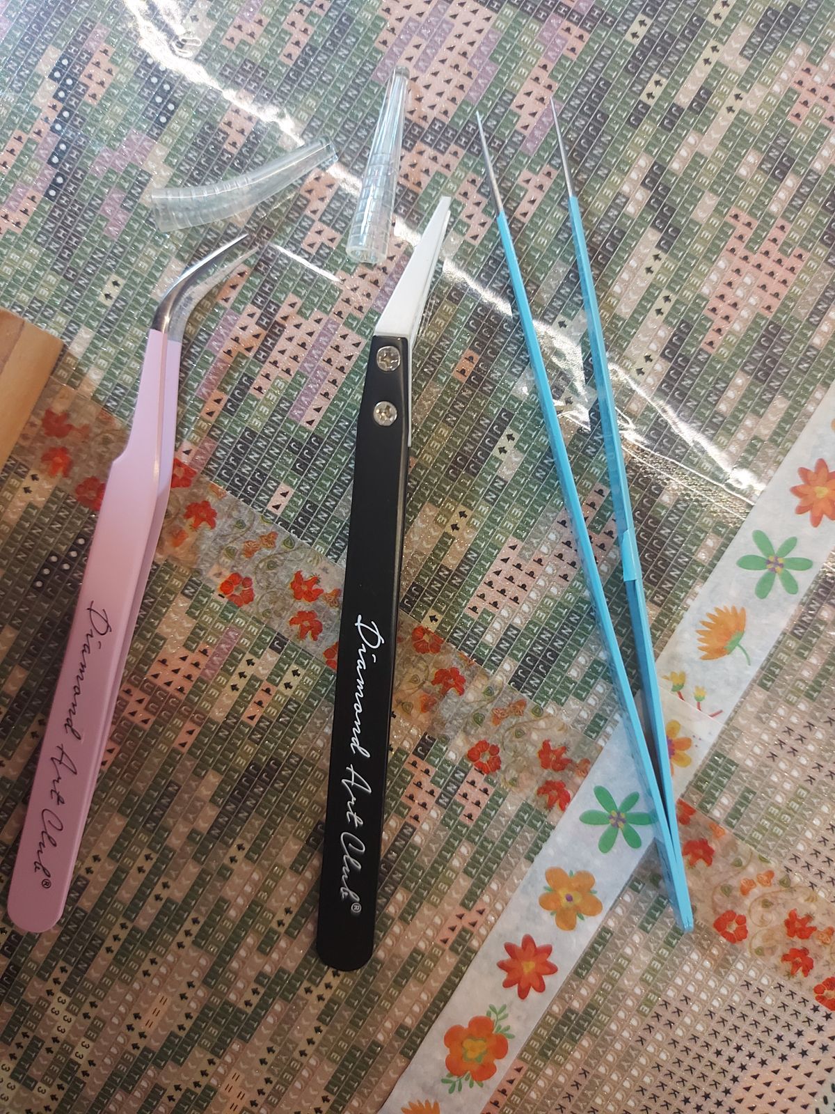 The blue one and the pink one are excellent tweezers to pick up a drill from the canvas!!