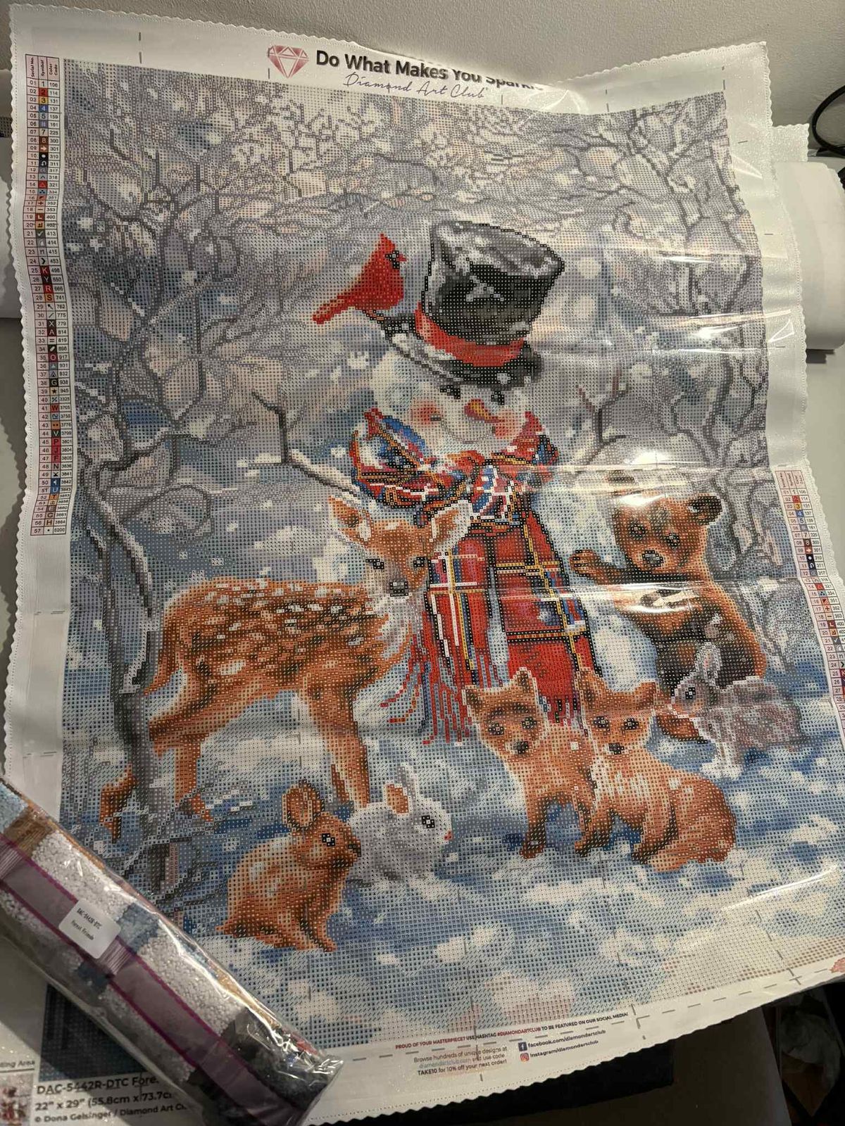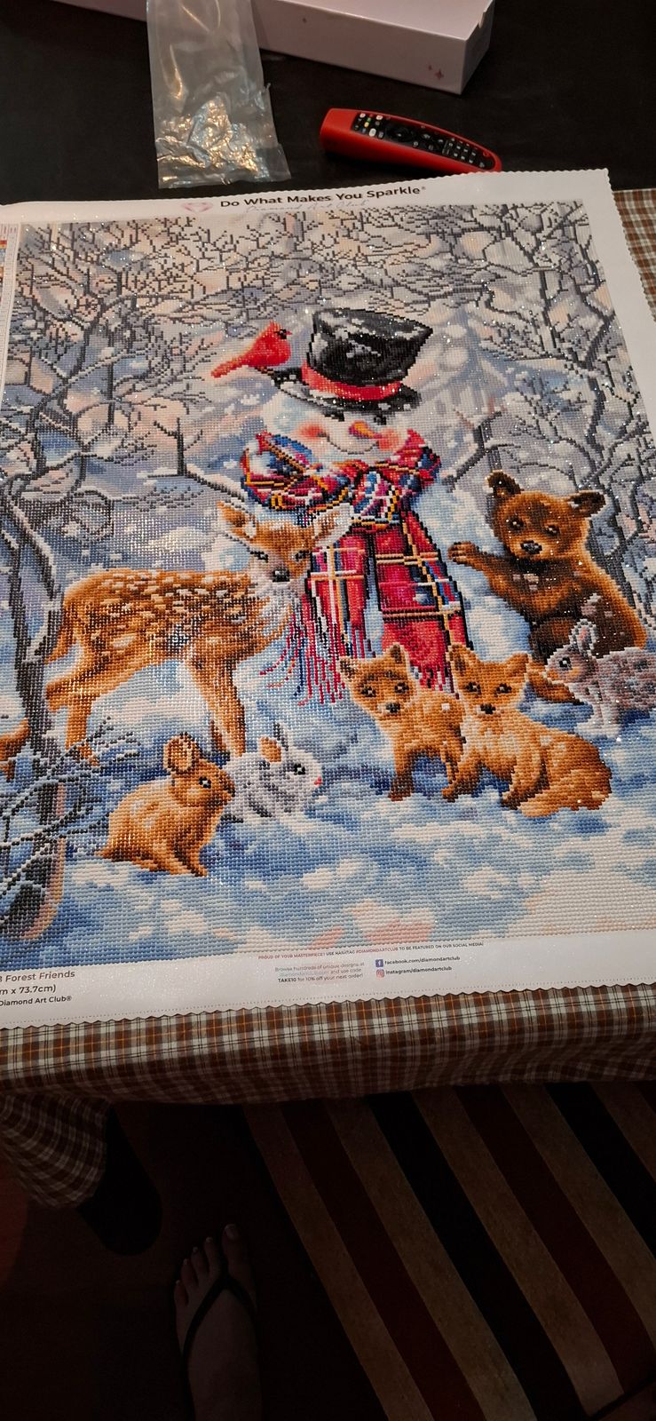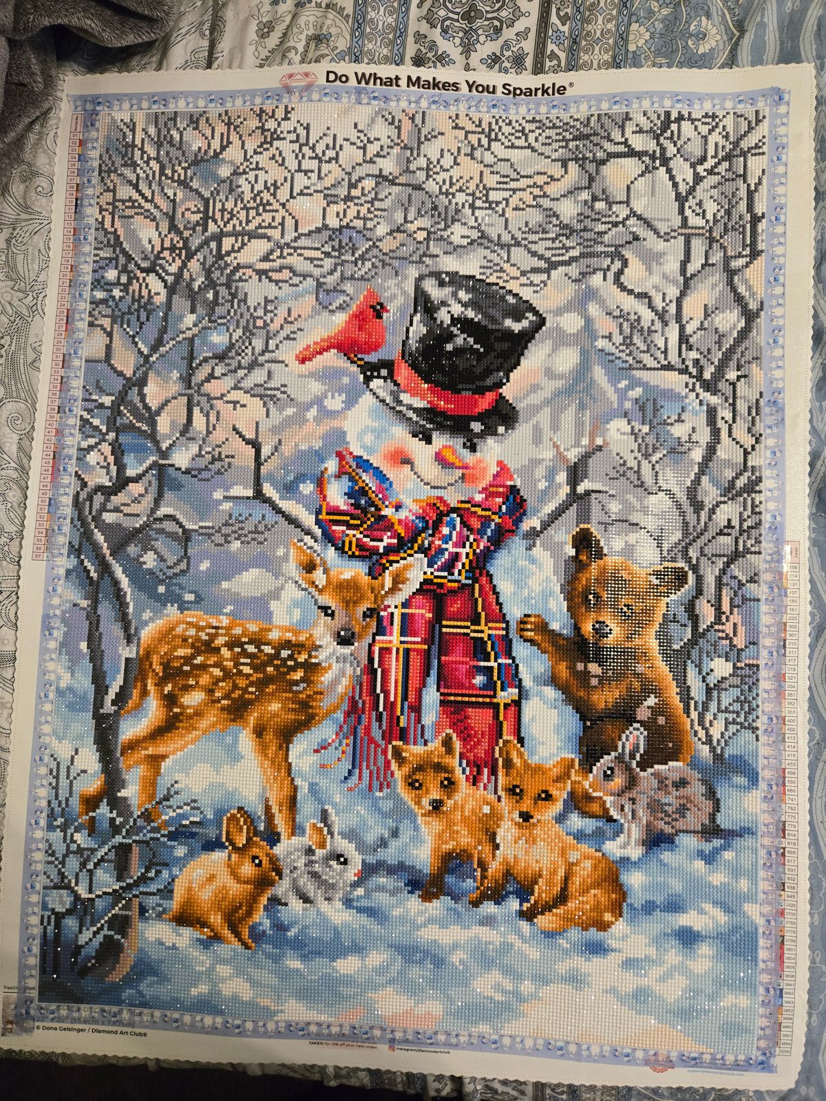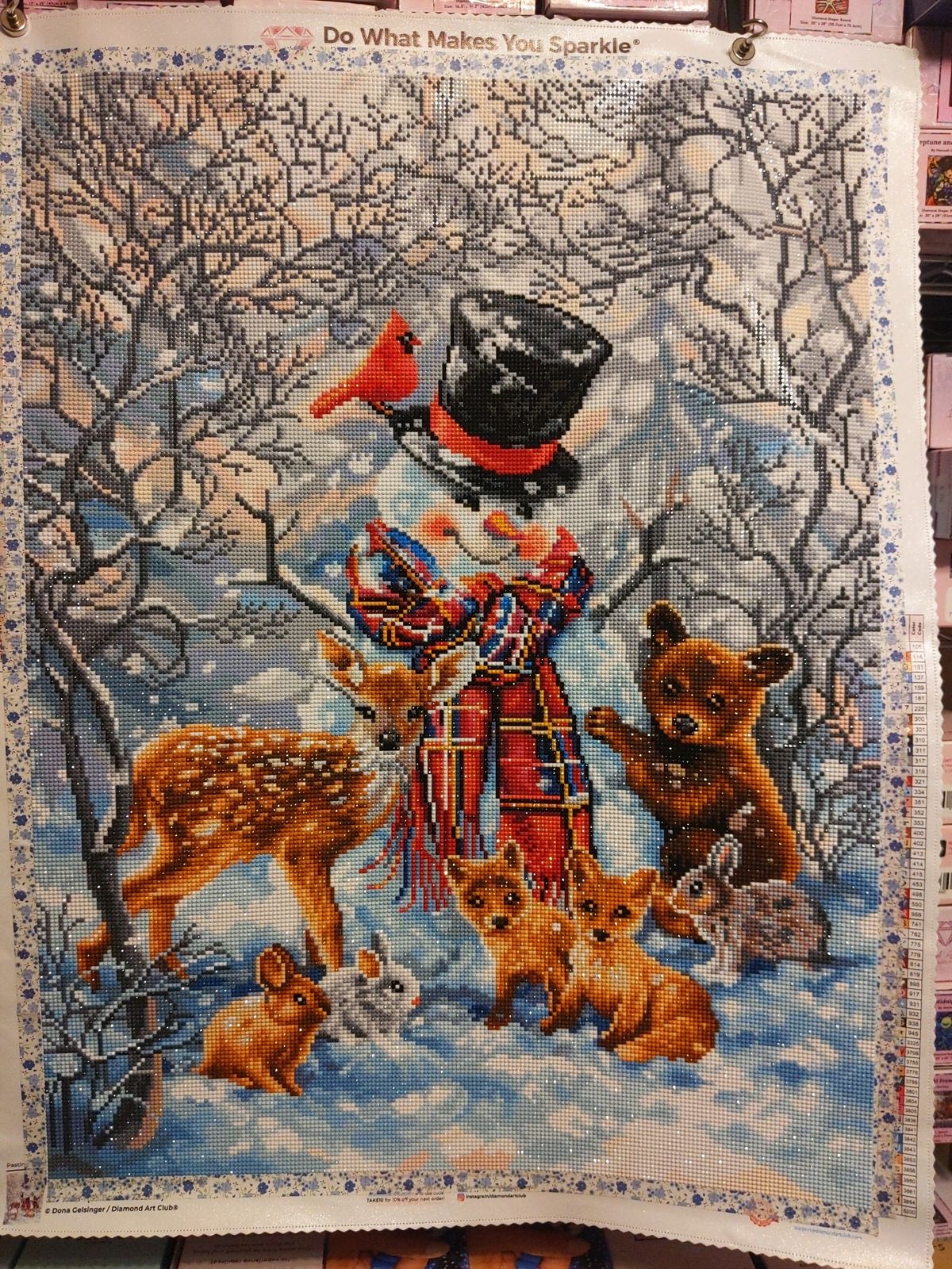 I love this snowman surrounded by his forest friends The sparkle is amazing!