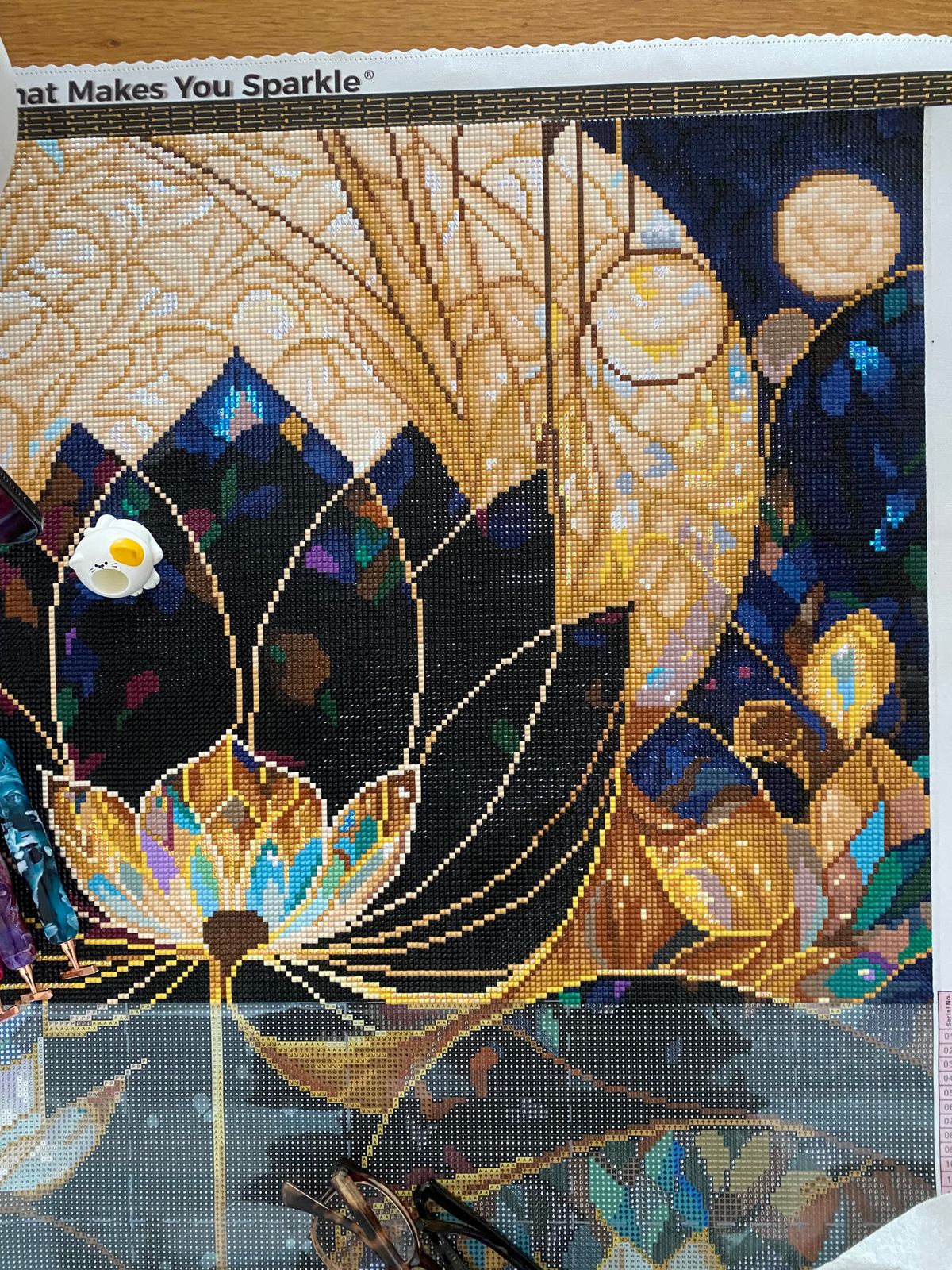 This is the quickest I’ve ever completed a painting. I was concerned because of all of the black, but the other colors were really complemented because of it. I still love Diamond Art Club!!!