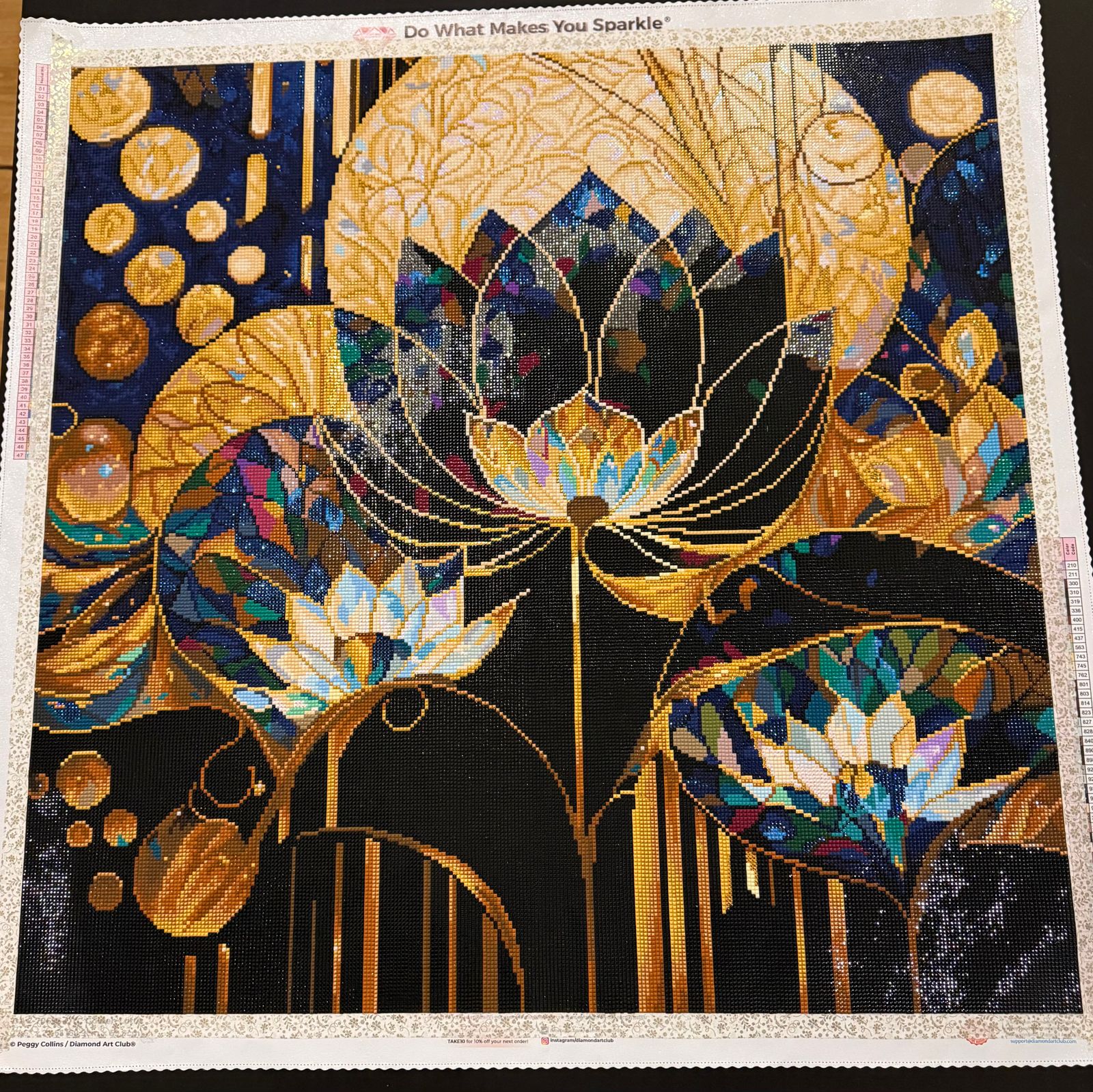I have completed this kit and have put the image up prominently in my living room. I get so many compliments on this from both IRL folx and those that see this online. This was a joy to do with lots of added bling including metallics. Thanks DAC and Peggy Collins for another great canvas and exprience.