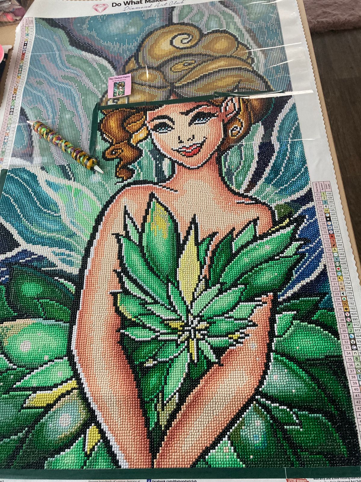 The canvas is gorgeous even before the diamonds go on. She sparkles like crazy. Green is one of my fave colors so it was fun doing this one she is beautiful . It took me along time to do only because I’ve been VERY busy and have not had time to work on her full-time