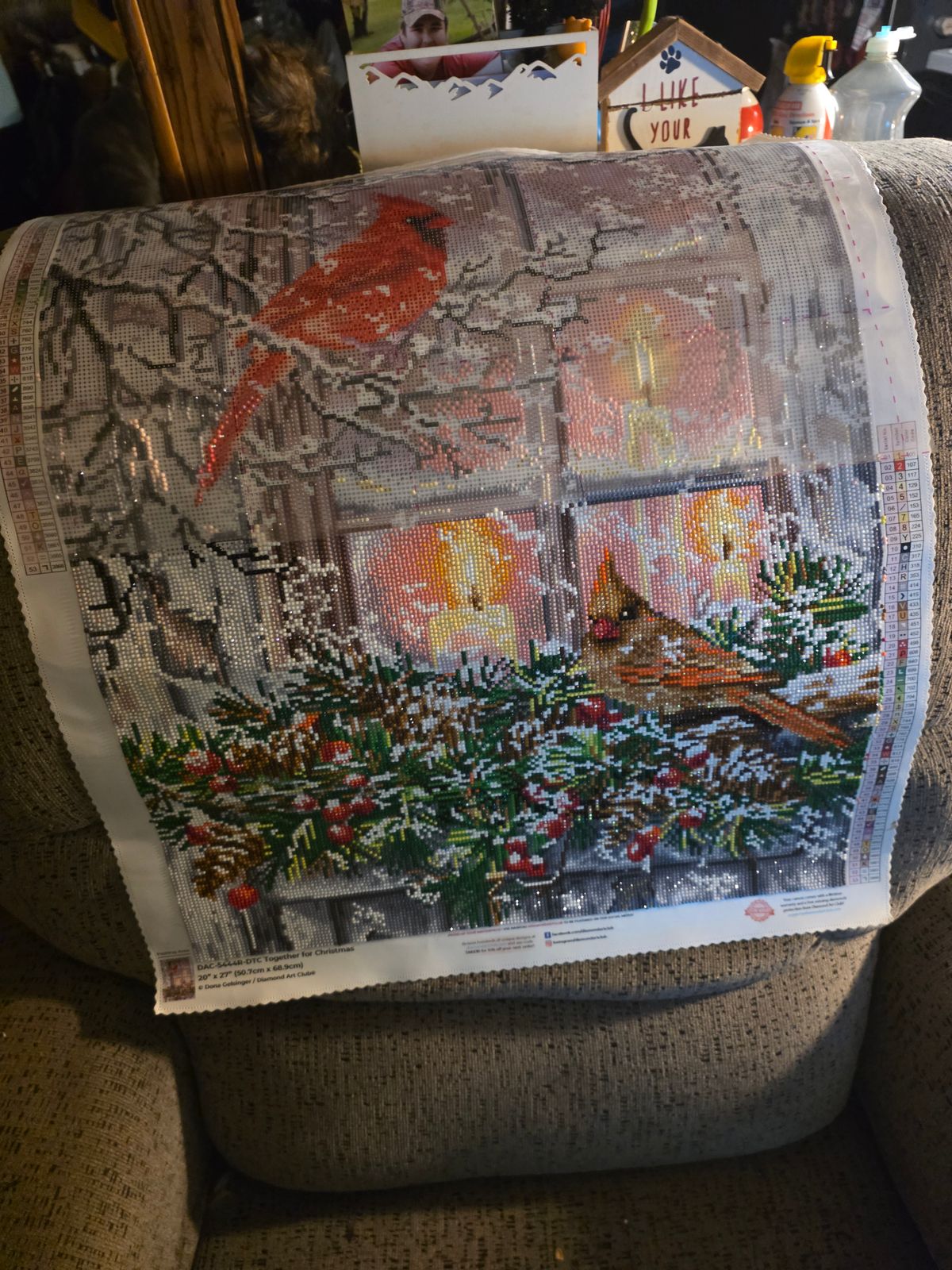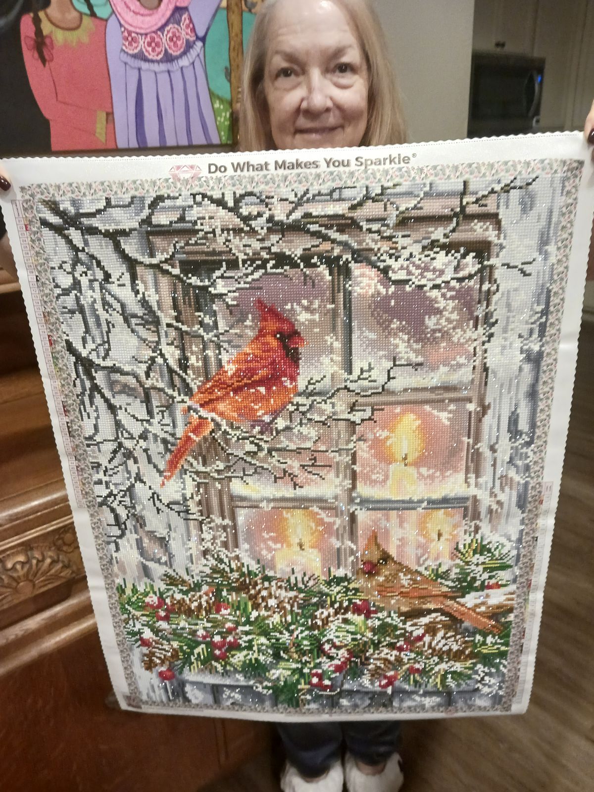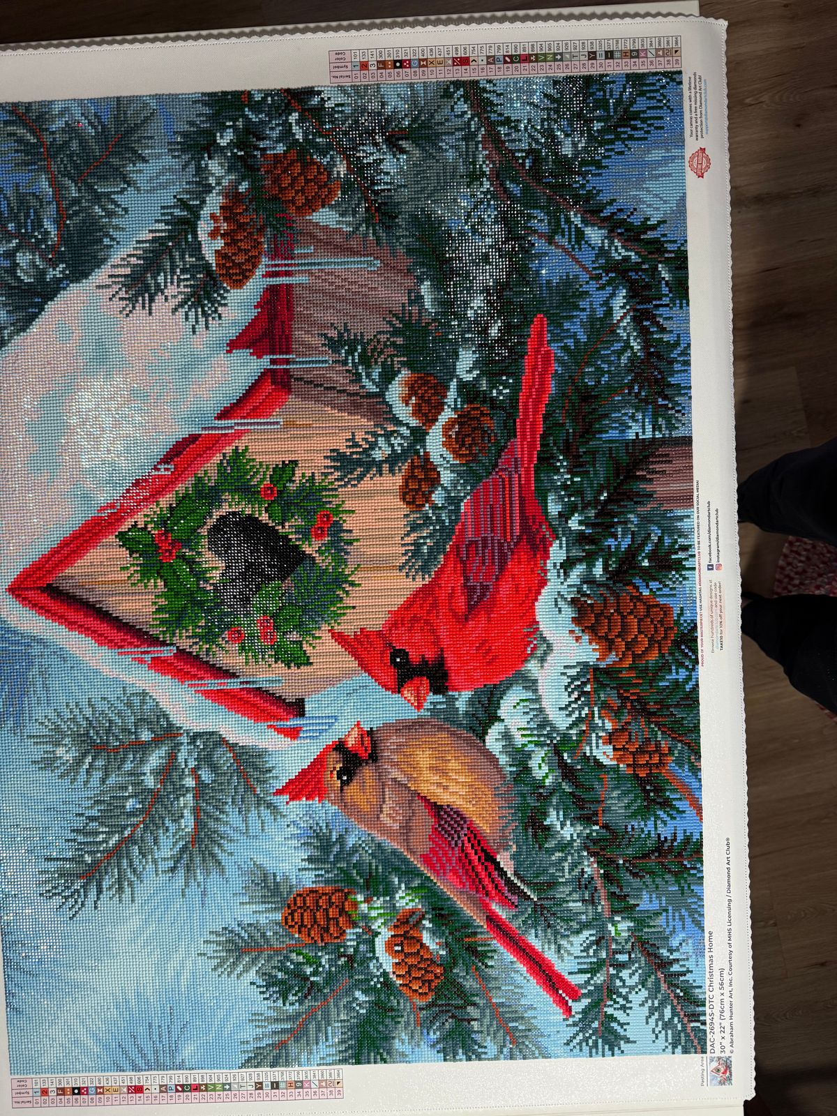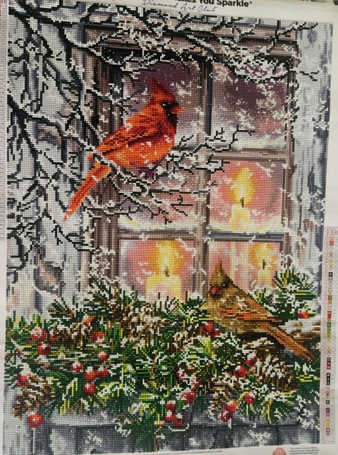 This diamond painting turned out beautiful!!!!!!!i will be leaving it up all winter long. I have purchaced diamond art club sparkley gem and i added it my project, and made it mine, so its extra sparkley.