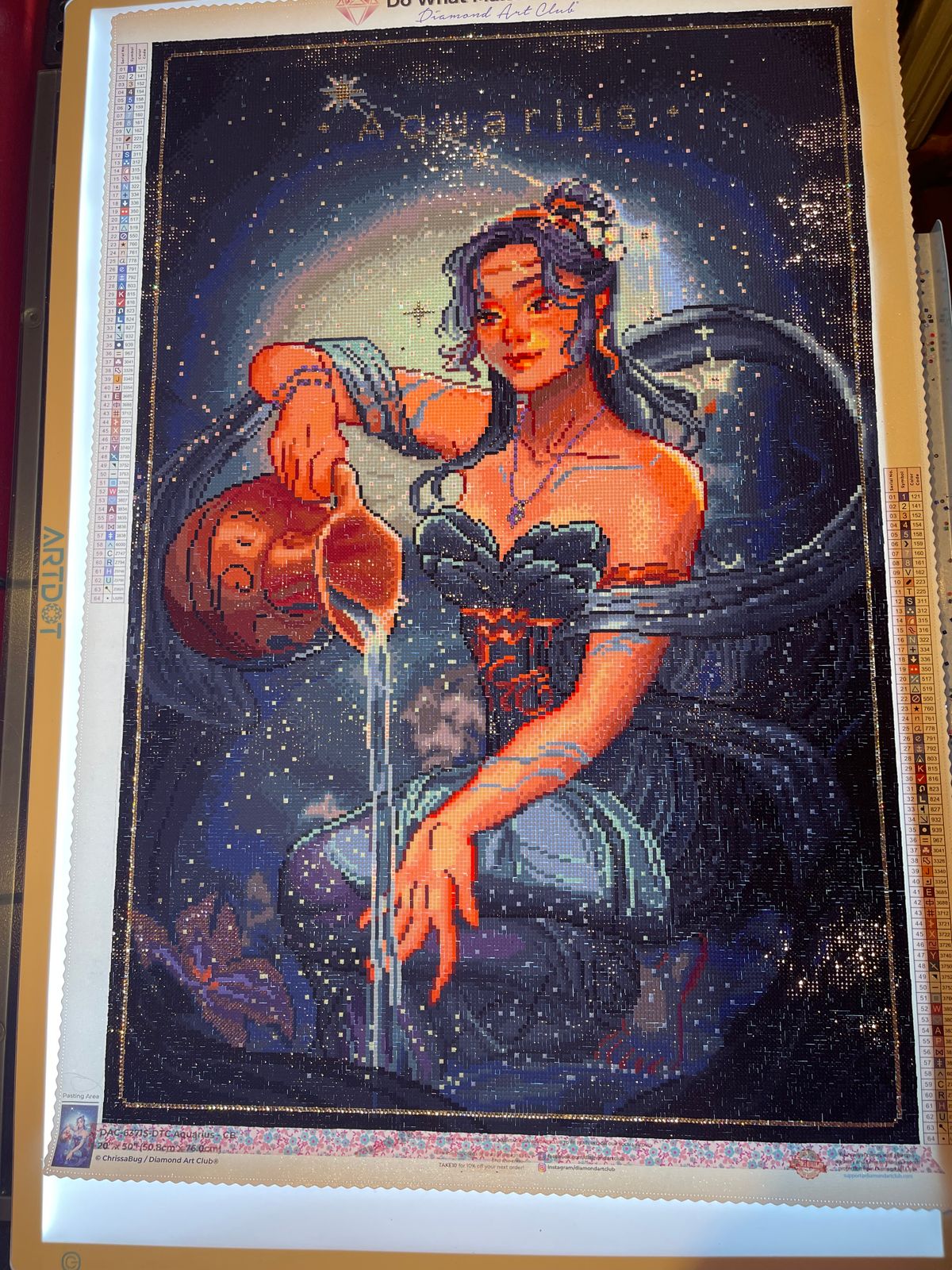 This is a beautiful diamond painting! The canvas was so clear and easy to read the symbols. The colors are very vibrant and sparkly. One of my favorite Diamond Art Club purchases