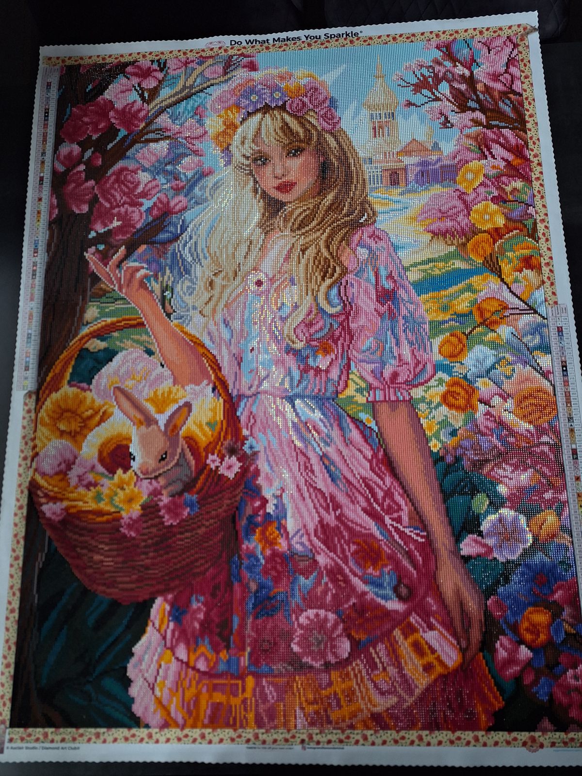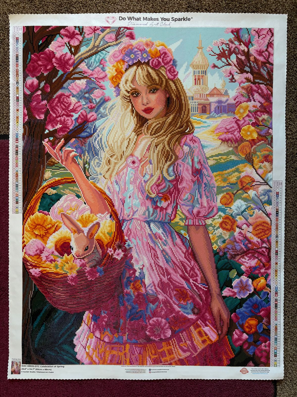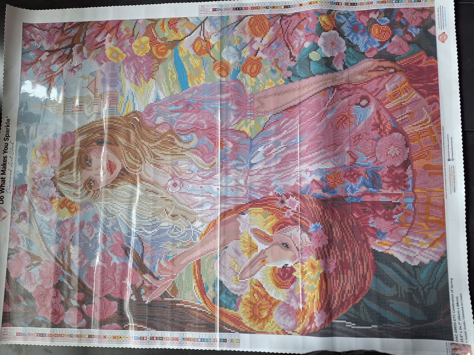 This is a bigger piece. The detail is awesome so the confetti is substantial (lots of single placing!). Love the color palette. This will be gorgeous completed.
