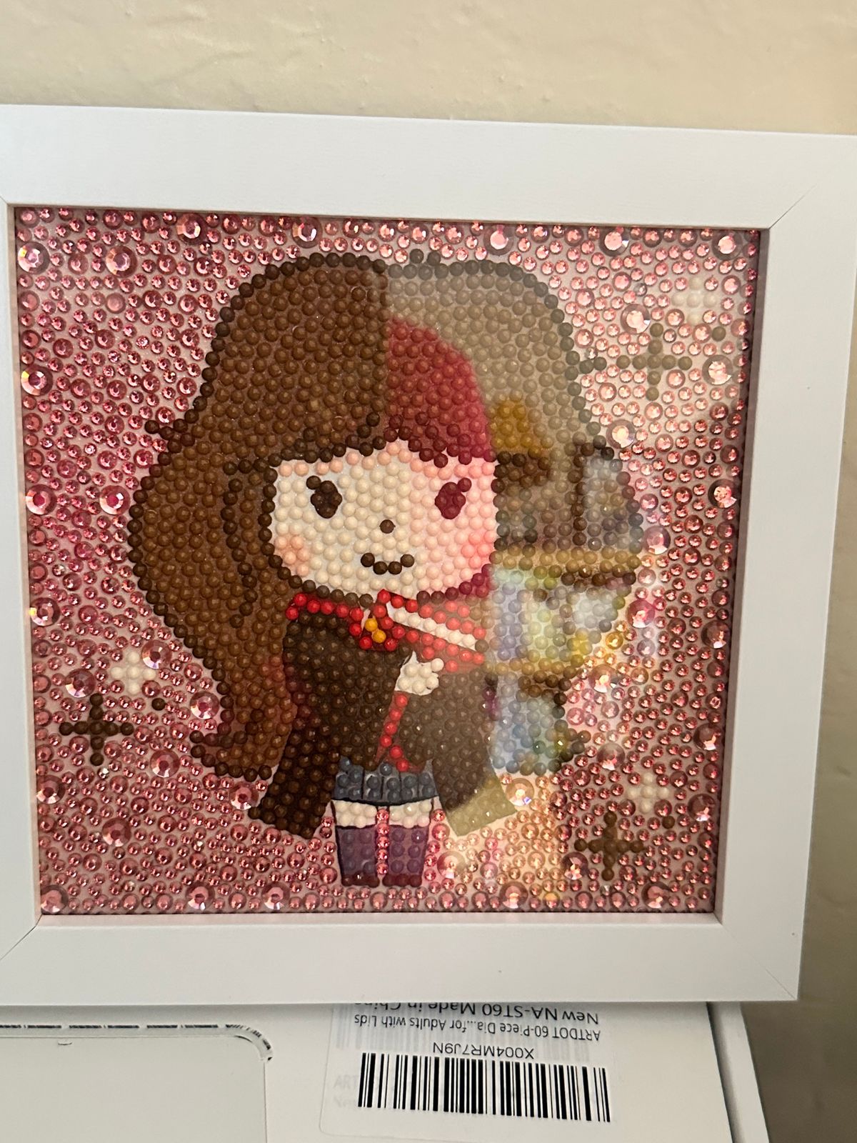 Such a fun painting. I love that it comes with a frame ready to go. The different size diamonds give it a fun look. Can’t wait to start the next one.
