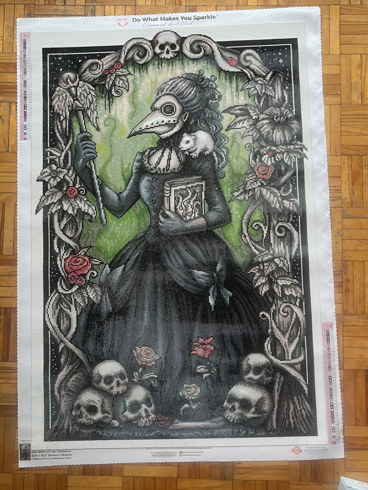 As soon as I saw Ms Pestilence, I had to have her. One of my favorite Halloween characters to dress as is a Plague Doctor and you rarely see a female. The drill colors are subtle but so beautiful once placed. I'm having such a great time working this canvas.