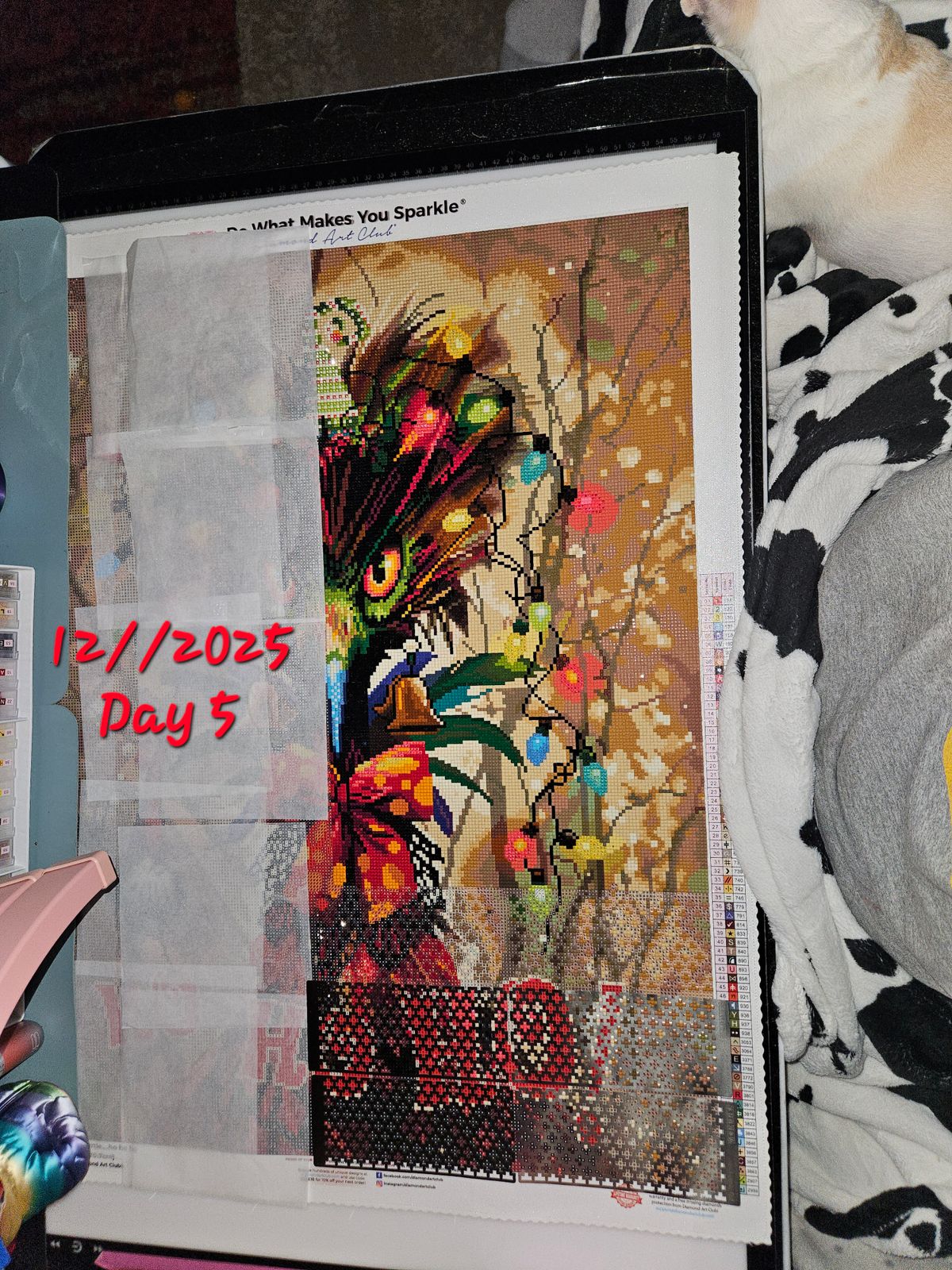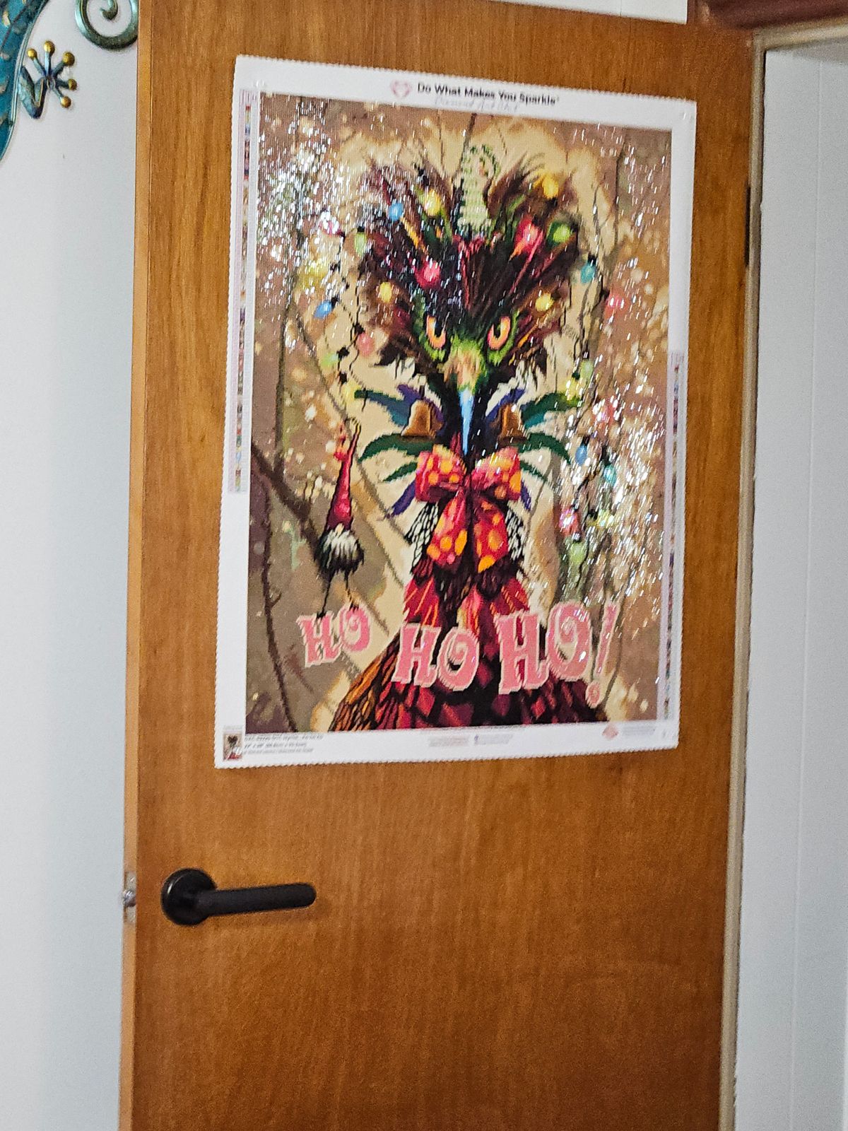 This was such a fun image to work on, with lots of quirky little bits to keep you interested. I'm not a fast diamond painter, and this one took me 7 months to complete. I can't wait for Christmas to roll around so that I can hang my birdie-Grinch up for the holidays!
