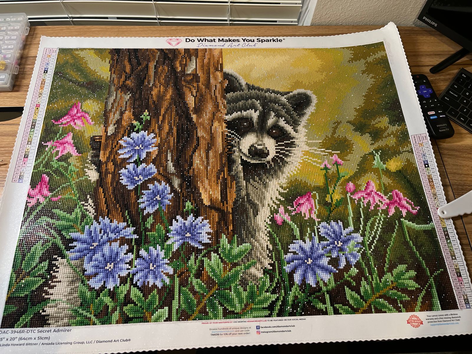 I just finished this picture and loved every minute. From the sweet face of the raccoon to the detail of the tree trunk. Always amazing quality of the materials!