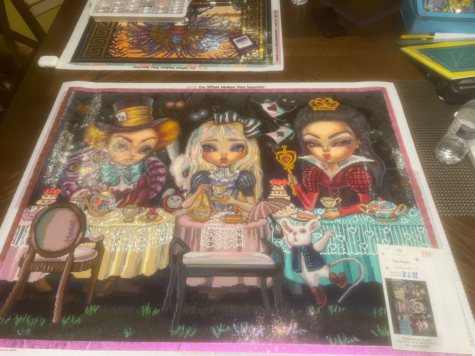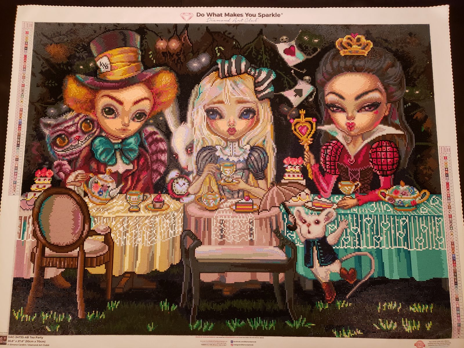 I fell in love with this artwork as soon as I saw it. Great Alice in Wonderland themed art. Took me a long time to complete but the end result is amazing!