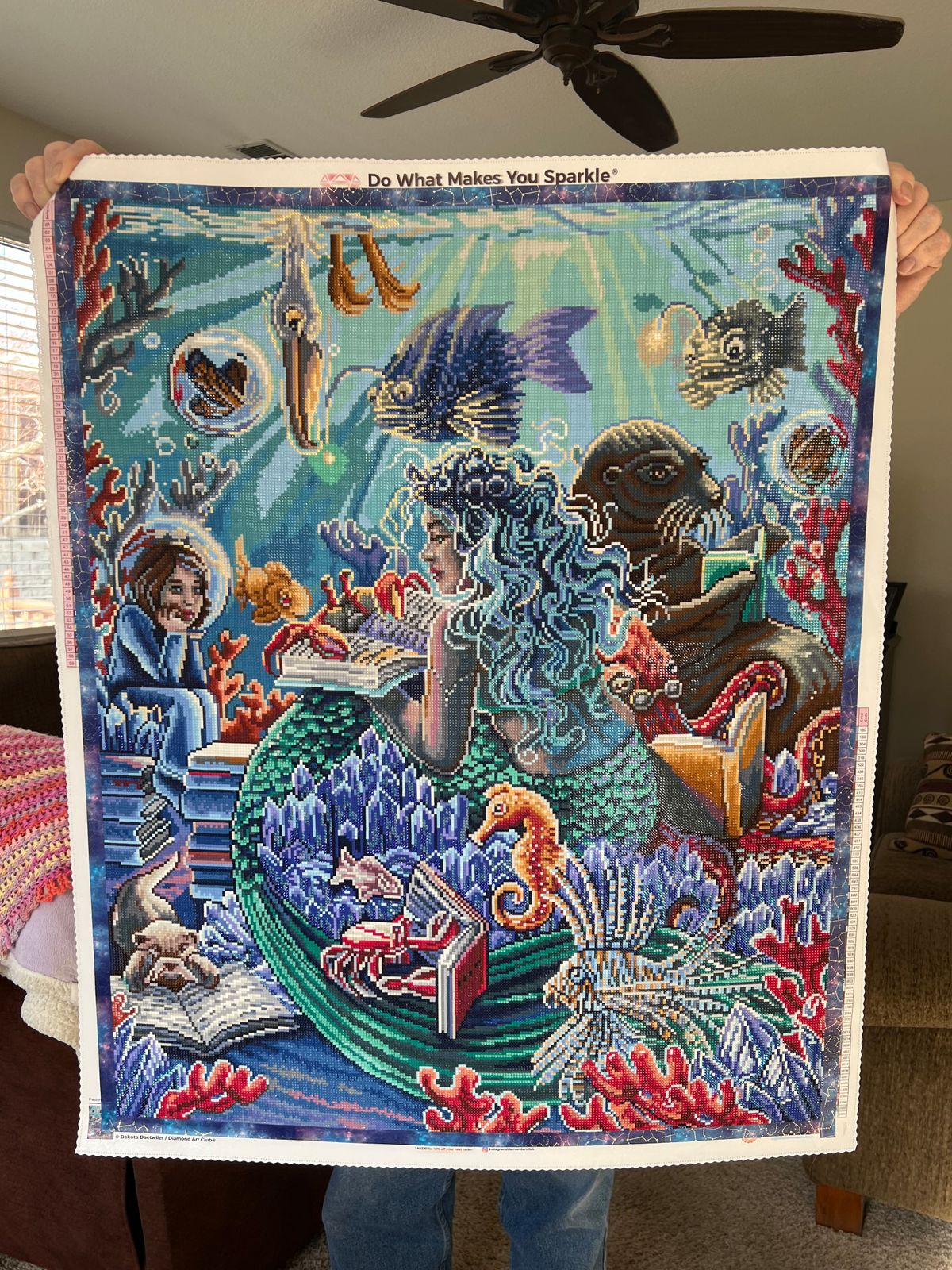 I LOVE how this one turned out! The art is beautiful, and I’m obsessed with the anglerfish book lights. I’m a school librarian and can’t wait to hang this one in my library.