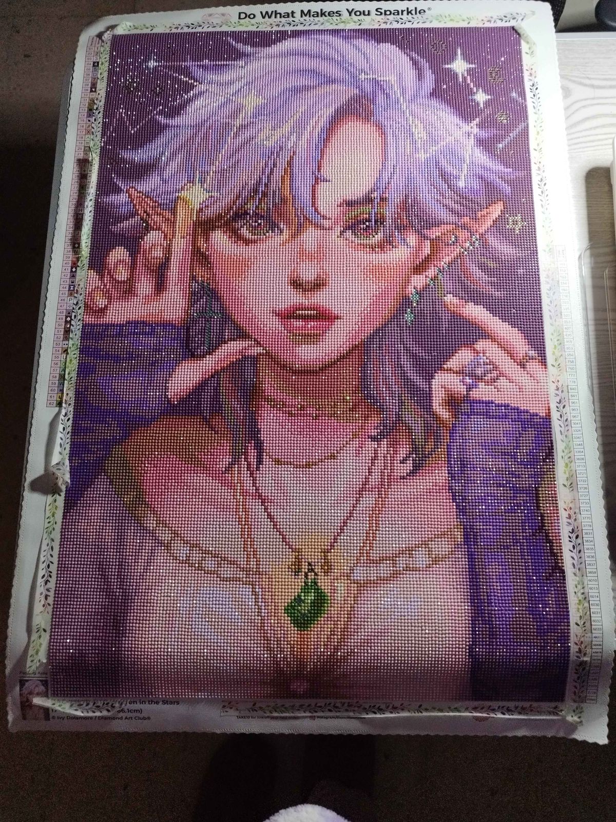 When I first saw this painting, I fell in love with it. I wasn't able to get it at the initial release or the few restocks that happened. But when this painting was last restocked, I got it. I loved working on it so much, the iridescent drills are beautiful and I love the placement of them.