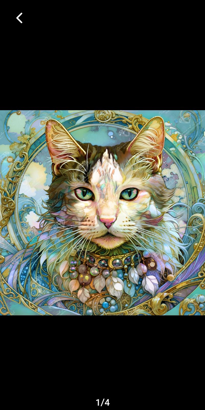 Gaze into the eyes of aquatic mystery and go beyond the ordinary. Enrobed in swirling jewels and feathers, this feline emanates grand majesty as well as connections to ancient realms.