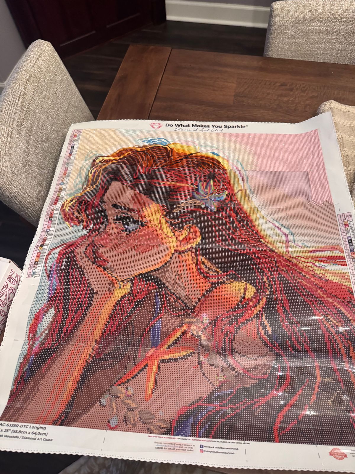 She is such a beauty … she reminds of Ariel … I’m so excited to finish her and hang her on my bedroom 🌸🩷💎