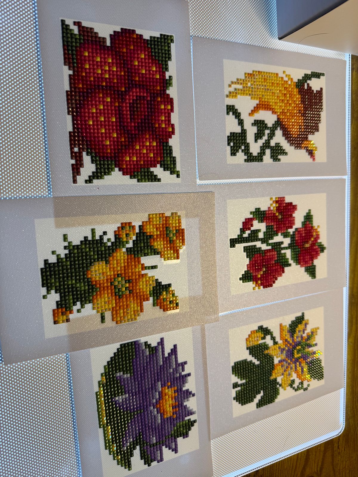I thoroughly enjoyed completing these lovely flowers. The brilliance of the fairy dust drills, used in combination with the ABs, is really amazing. It is very easy to frame these beauties, too!