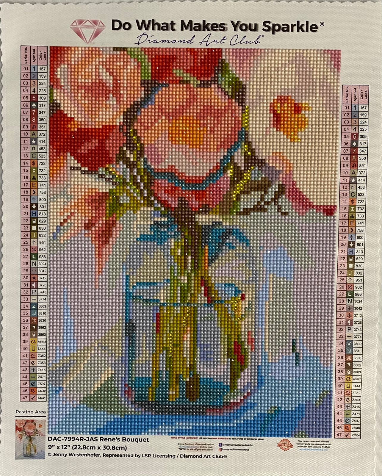 Diamond Painting Rene's Bouquet 9" x 12" (22.8cm x 30.8cm) / Round with 47 Colors including 1 AB and 1 Iridescent Diamond and 7 Fairy Dust Diamonds / 9,296