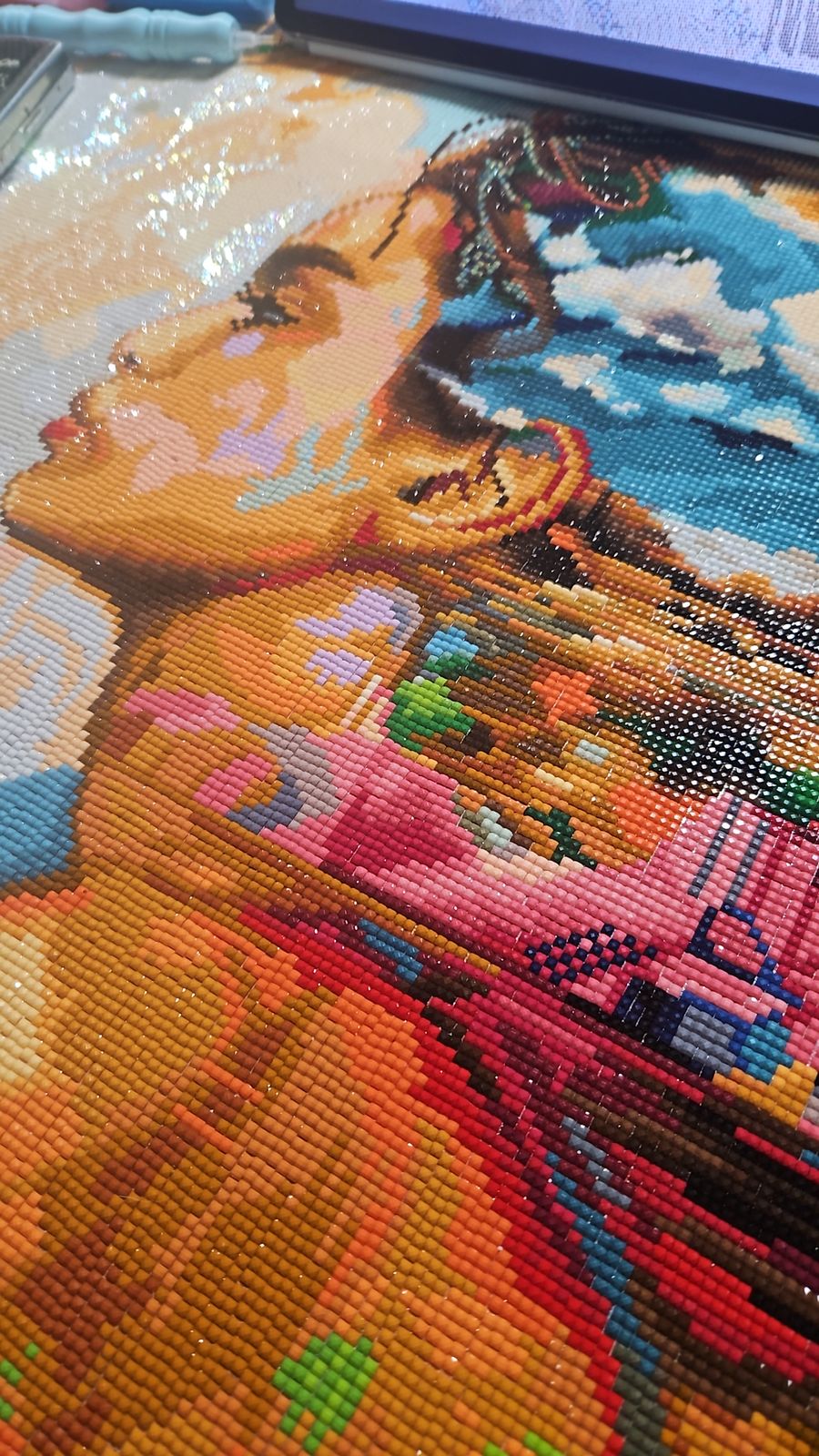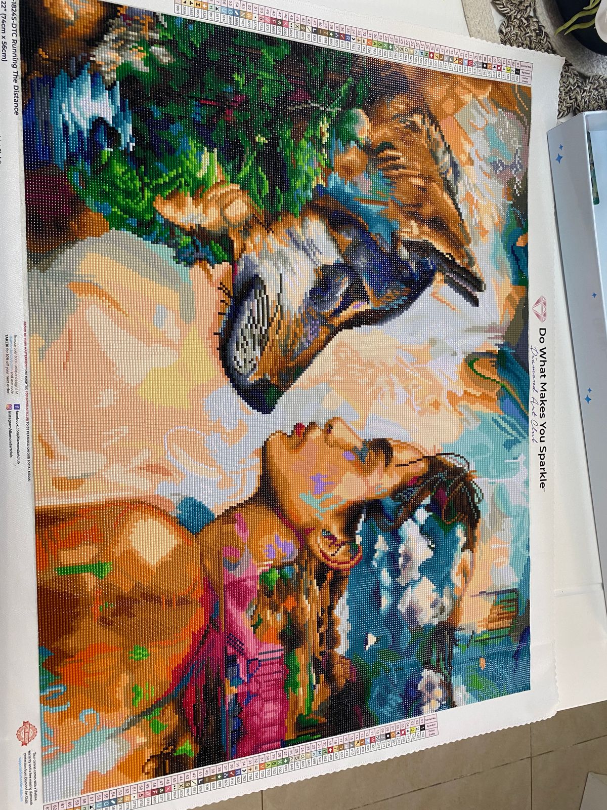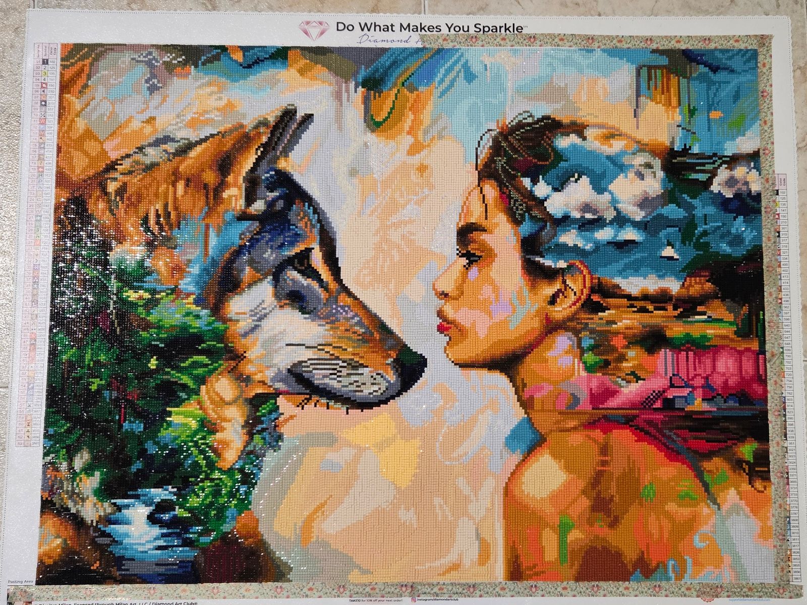 This canvas diamond painting is stunning. The colors are beautiful. Love the whole kit. Very easy to follow and do.