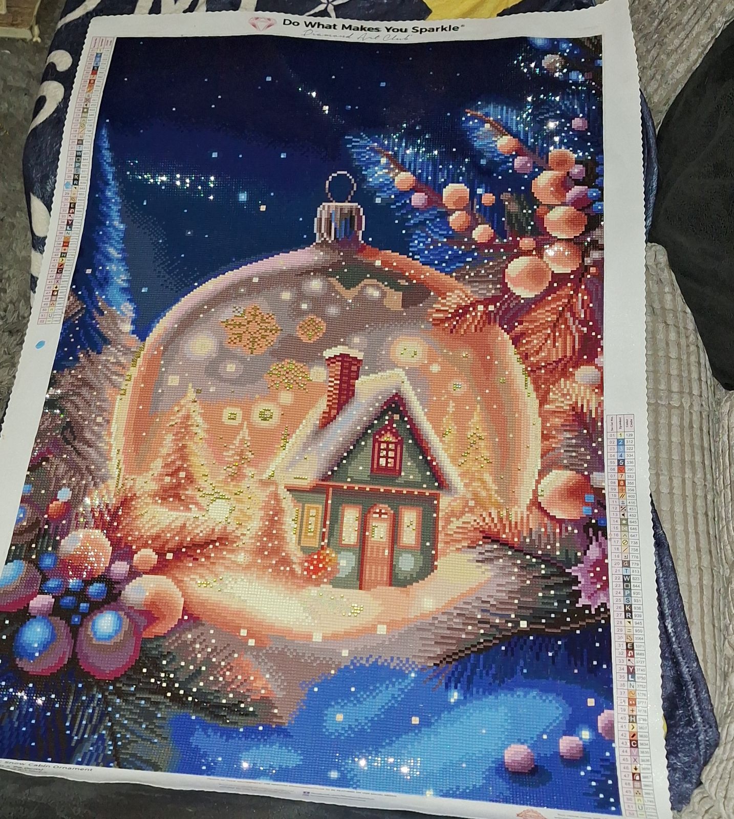 I have been waiting for this one to get back in stock and it finally did! I am NOT disappointed, even before I started it it was gorgeous!! Can't wait to display it at Christmas 😁