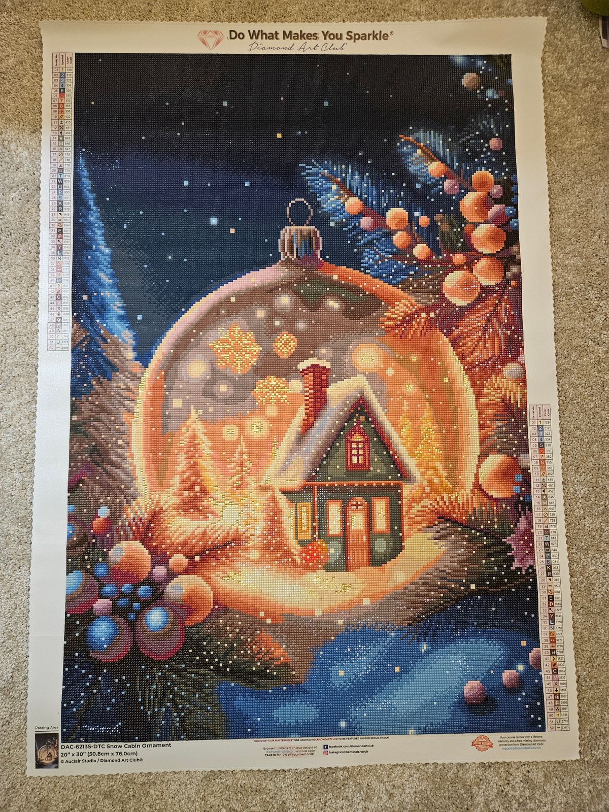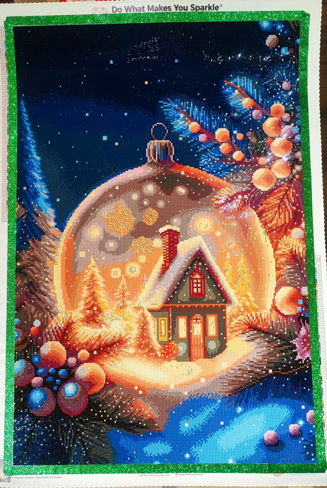 Diamond Painting Snow Cabin Ornament 20" x 30" (50.8cm x 76cm) / Square with 52 Colors including 1 ABs and 2 Fairy Dust Diamonds and 1 Iridescent Diamonds / 62,220