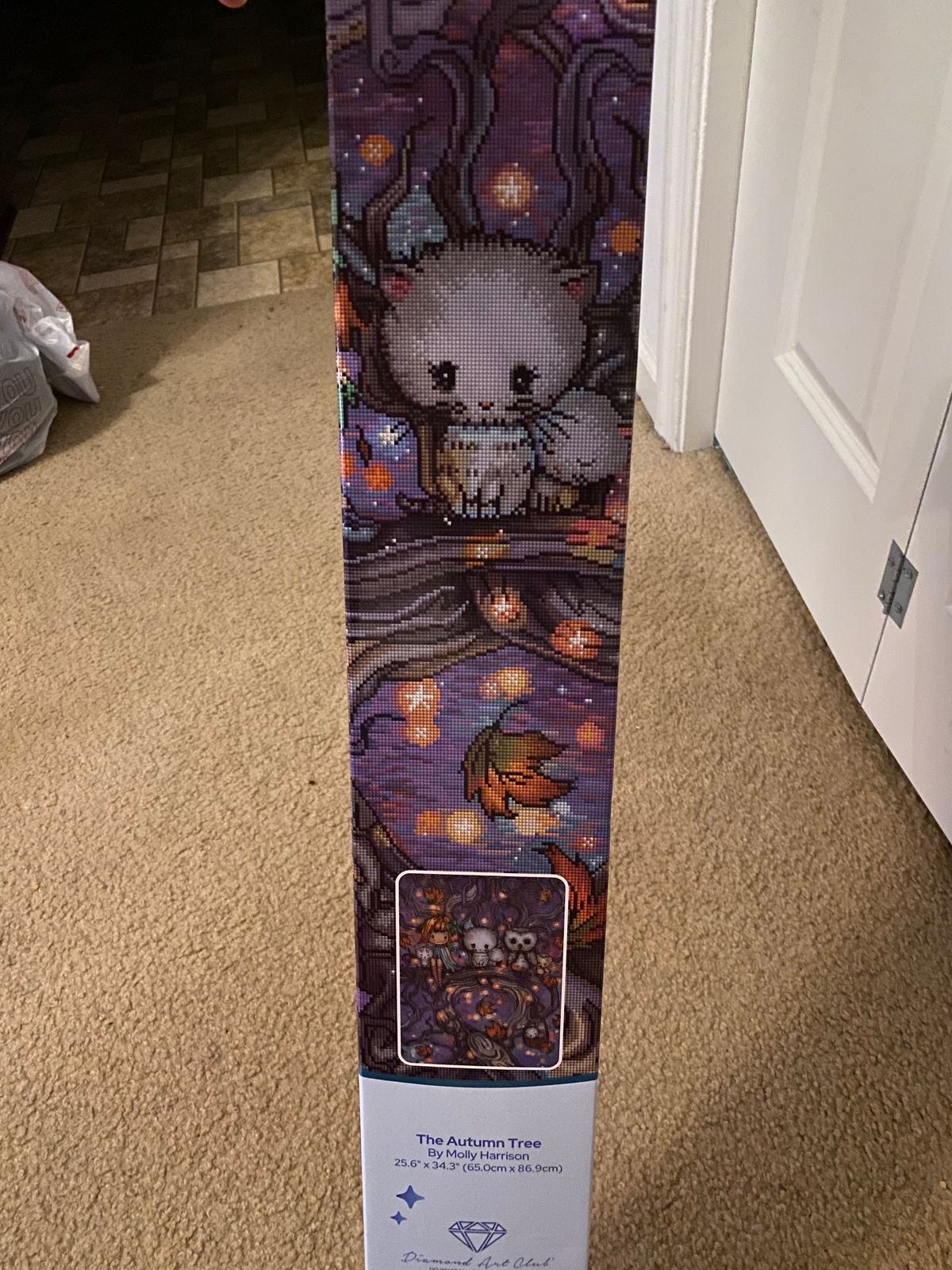 There are a lot of colors and special drills, so the sparkle is no joke. The tree has some confetti, but nothing overwhelming — just enough to keep it from getting boring. The background goes quicker, and the squares fit well. When it’s finished, the picture looks sharp and full of life.