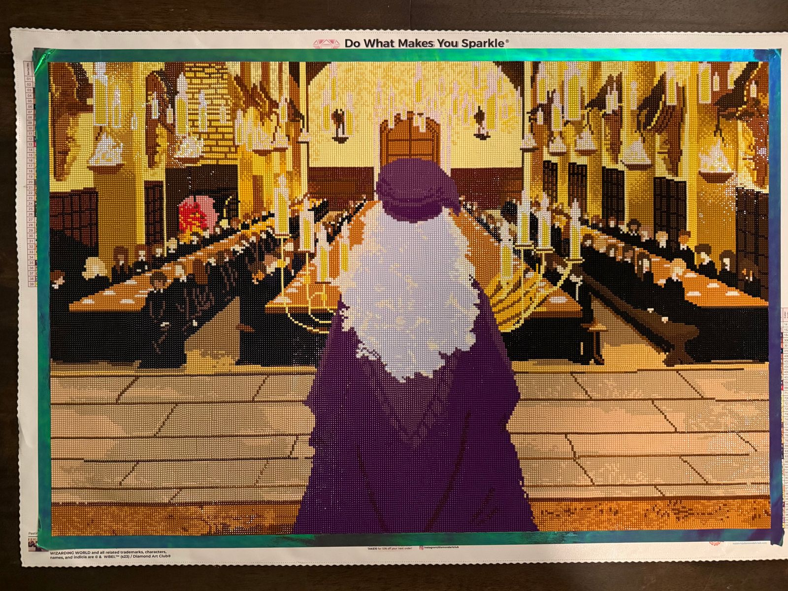I finally finished The Great Hall. I started this in February of 2024, and it was maybe the third big painting I had ever bought. I got it because I love Harry Potter, but when I started working on it then, I HATED it. It helped me discover that I hate color blocking. I struggled with a lot of the drills that came with it, and the gapping was bad back then. I put it away and just came back to it a couple of weeks ago, now that I’m MUCH more experienced. I still hated it, the colors are no fun, the gapping is bad, and the drills made me angry, but it’s DONE. And fast, because I was fueled with the desire to not have to do it anymore. 🤣😅