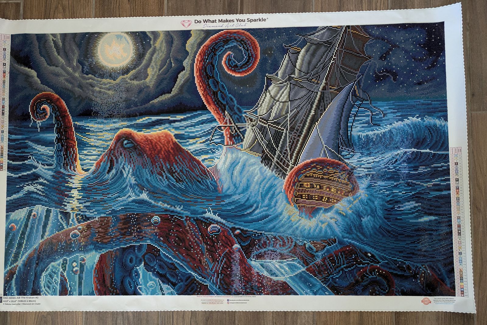 This was a 2022 purchase. I really like how the sky around the moon came out. There was a surprising amount of confetti on the Kraken which leaves no surprise that I also liked that area of the painting. I did not care for the line blocking on the surface of the water or the render of the ship. The drills were a mix of the pre-pointy drills and pointy drills. I enjoyed working with the older drills.