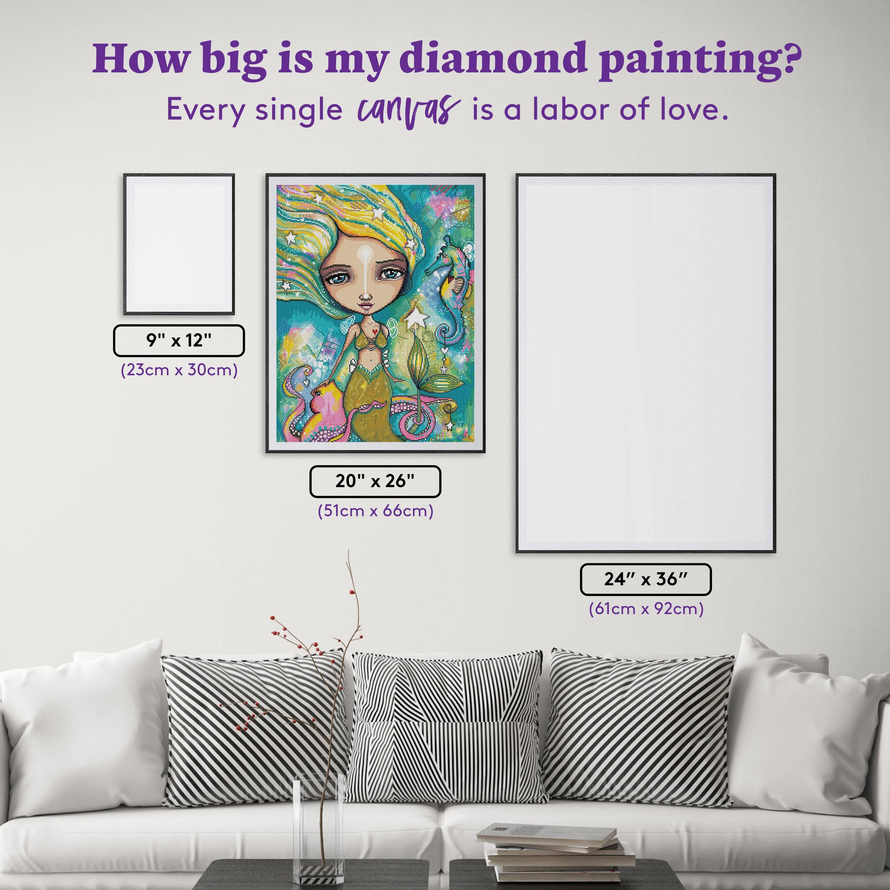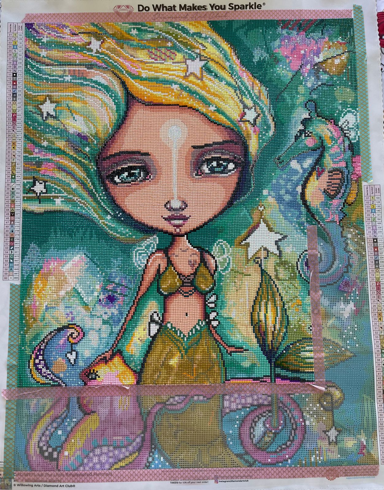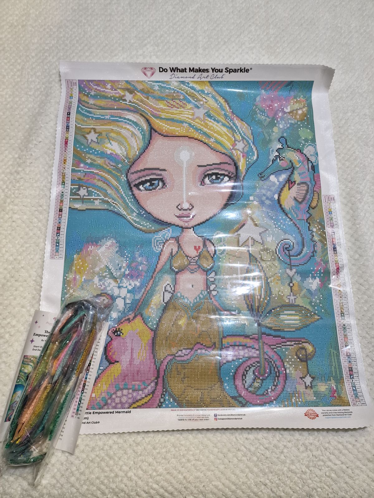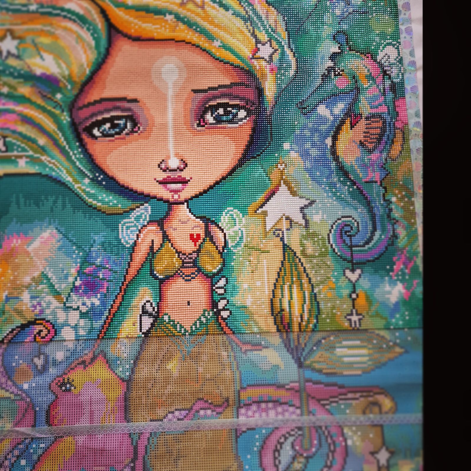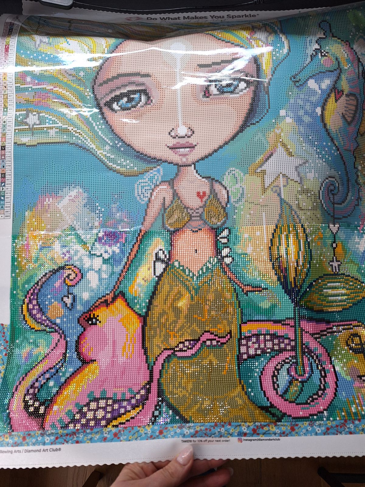 I don't know what it is about this artist but I like her work a lot, I bought almost everything DAC has turned into a diamond painting. I wish there where more. This little mermaid is so cute and interesting. I love the color palette and the background. It'll be fun to make it.