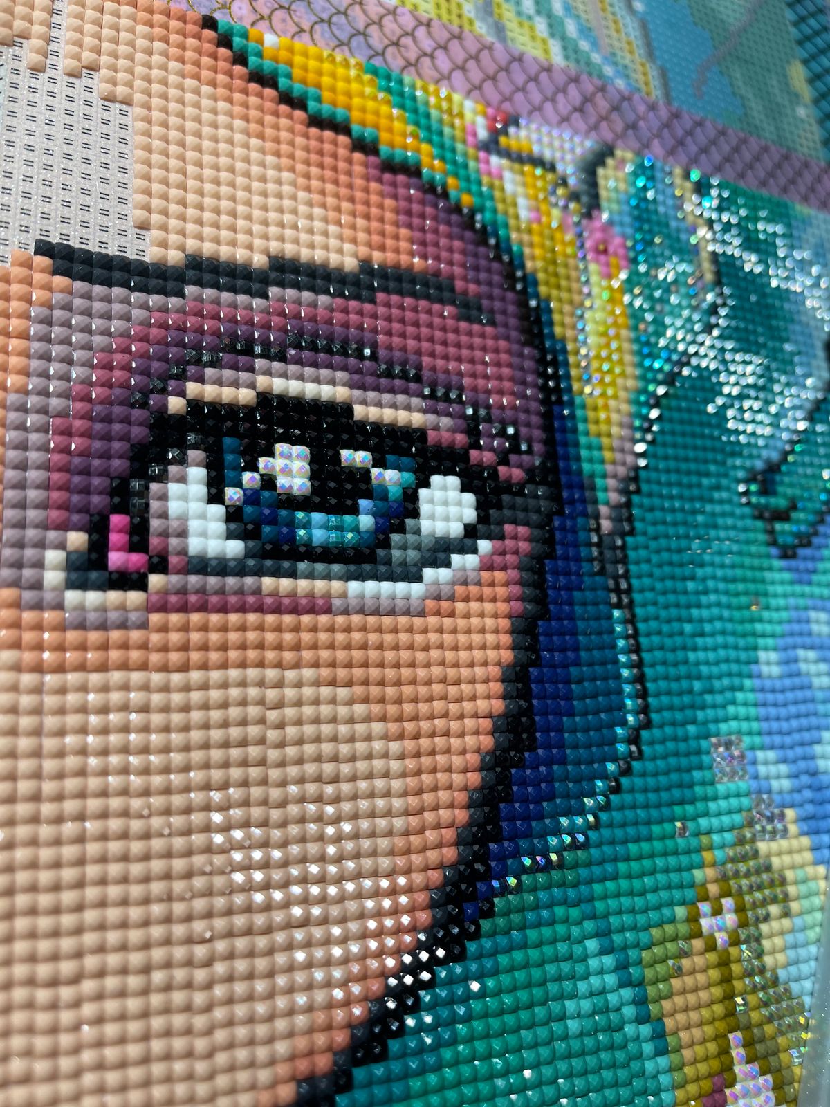 Es un lienzo con mucho colorido. Muy bonito. De diamante cuadro y 60 colores. Muy entretenido. Es el tercer lienzo que hago de esta artista.
