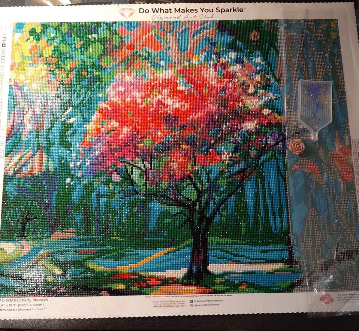 This was my first DAC painting. I fell in love with the design and the colors. The ABs are gorgeous, and the overall picture is very expressive and has a magical feeling! I framed it and it is hanging in my bedroom.