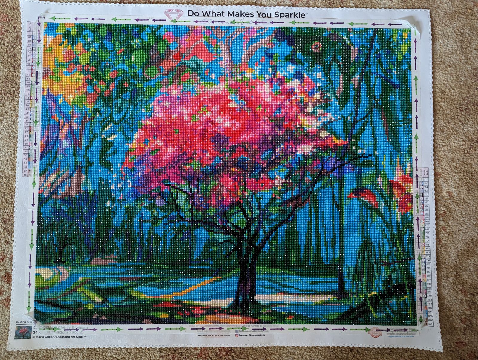 This tree sparkles in the most wonderful way! It was so much fun to paint because of the gorgeous colors. Photos do not do any justice to the finished product. It is my favorite! I am framing it and hanging it in my guest bedroom.