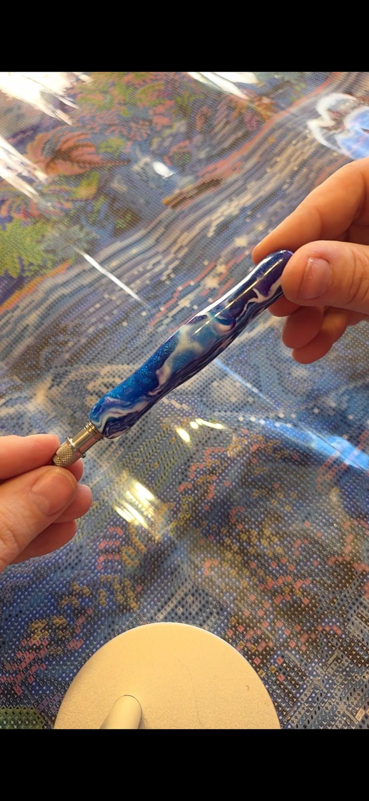 Add a touch of flair to your diamond painting with the Twist And Pick Premium Pen - Cyan Calypso Swirl. Designed to stand out with its vibrant swirls, this pen delivers both style and precision, featuring our Forever Stainless Steel Single Placer Tip for Twist & Pick Pens pre-equipped on one end. This premium, refillable tip offers unmatched precision and durability, ensuring perfect gem placement with every use. The other end of the pen is left empty and is compatible with our range of Twist-On (Threaded) stainless steel applicators, allowing you to customize your setup as needed. Note: This pen is not compatible with regular non-threaded tips. Ergonomically crafted for a comfortable grip, it measures around 9.6 cm (3.8 inches) without the tip, offering excellent control. Built for long-lasting performance, this pen will upgrade your diamond painting experience.