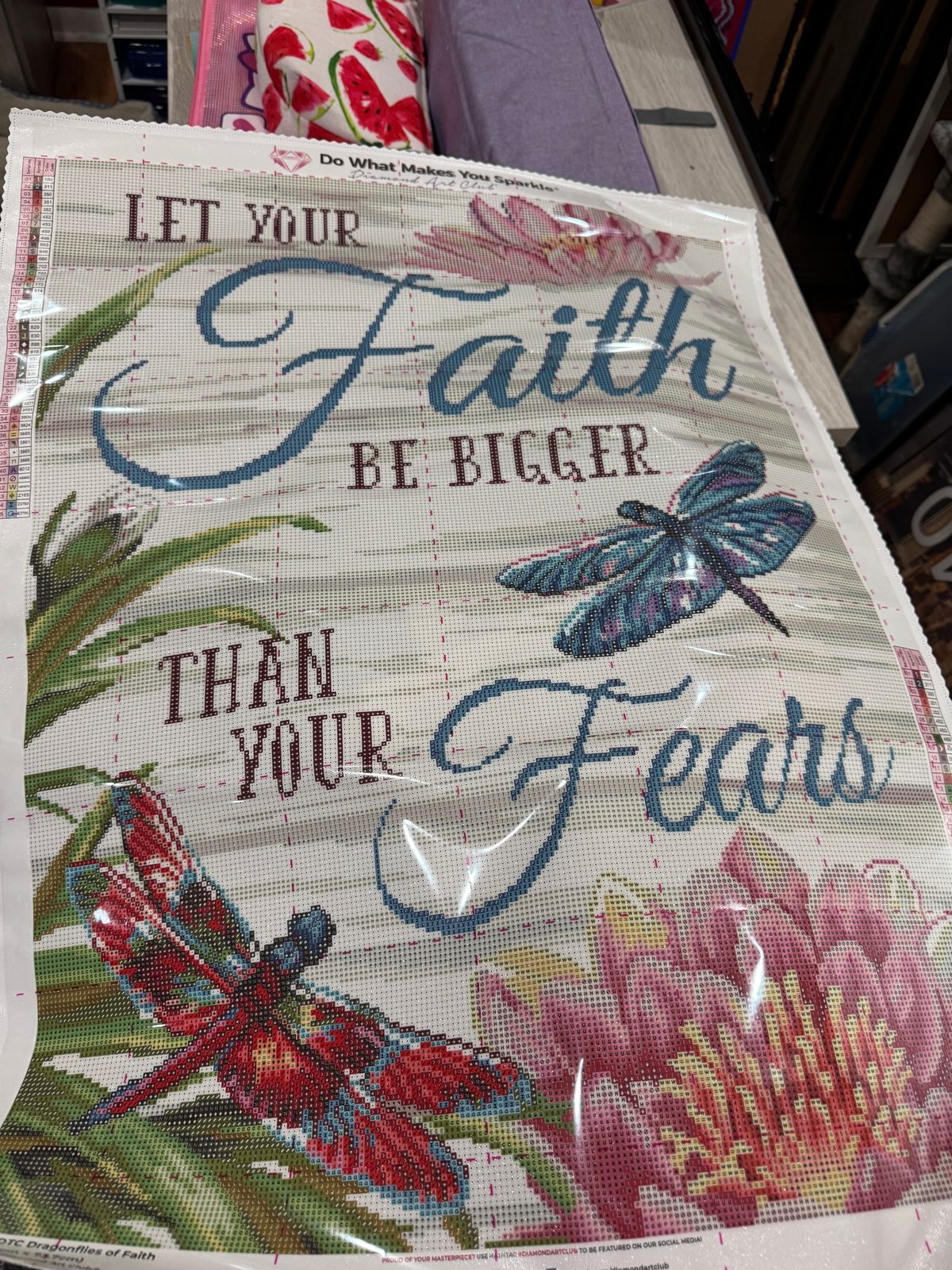 Dragonflies of Faith is absolutely beautiful! The canvas is clear and easy to work with, and the drills are high quality with a gorgeous sparkle that makes the design come to life. The colors are so vibrant, and the detail in the finished piece is breathtaking.