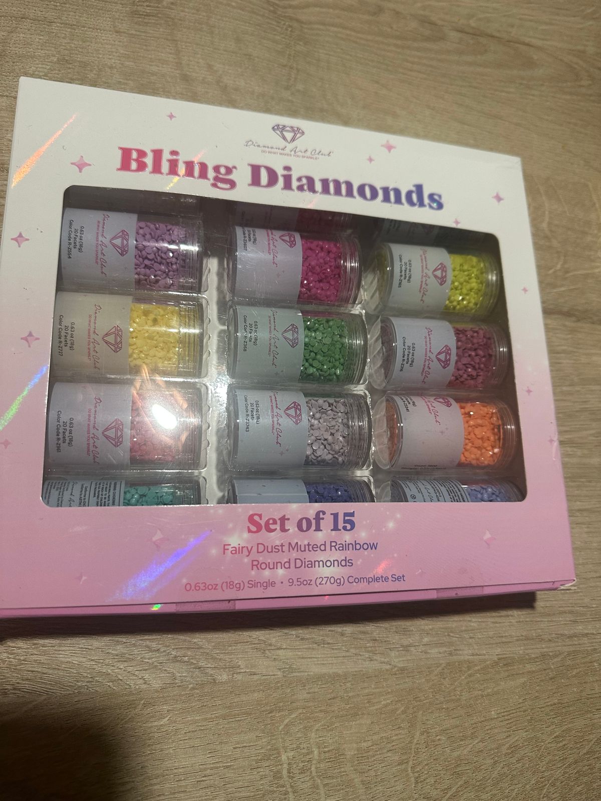 Bring a magical touch to your diamond painting with this 15-shade set of Fairy Dust® round drills. Each 0.63 oz (18g) jar contains our signature 20-facet resin drills, coated in a shimmering, pearlescent finish that beautifully reflects light.