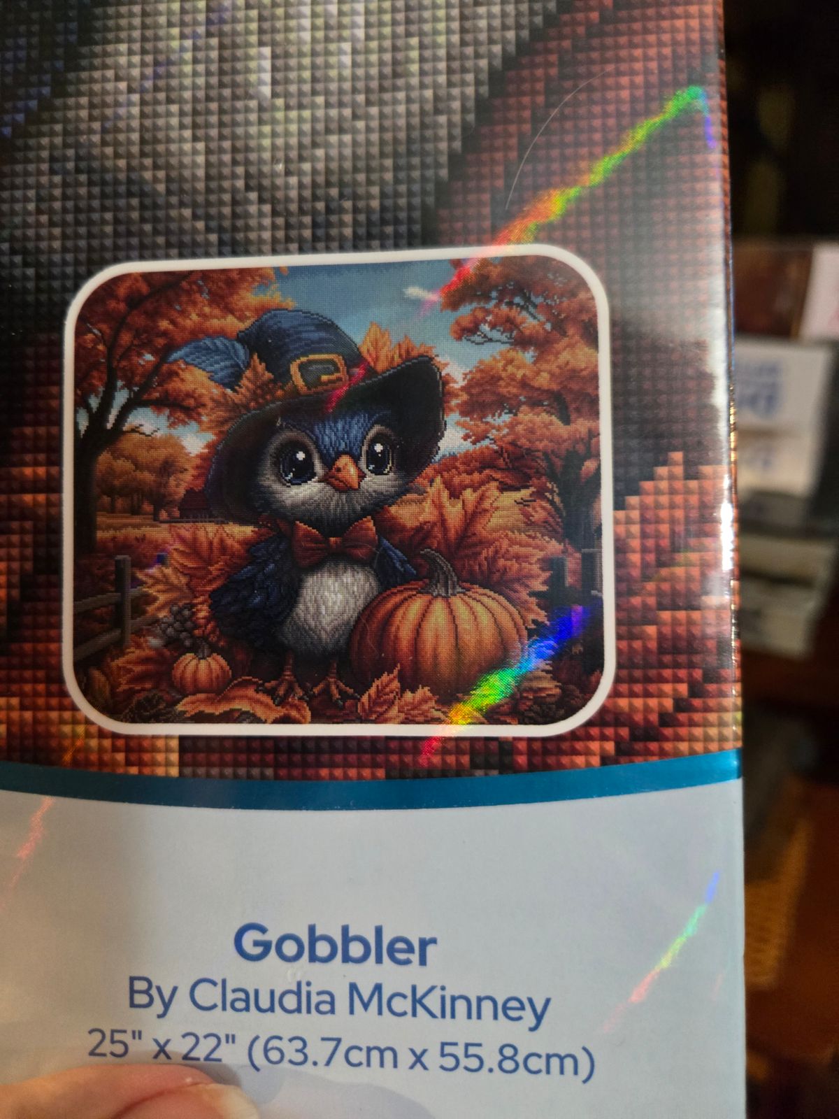 Gobbler contains my favorite colors since my favorite season is fall. There is mostly confetti and some color blocking. I'm going to frame it and hang it next fall. Awesome!!!