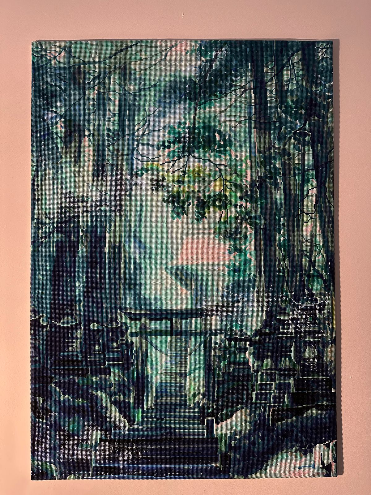 I bought this painting after my son visited Japan and showed me all of the photos he took from these religious gates in various cities. It becomes more meaningful when one understands the meaning of the Torii gates, the entrance to a sacred place.