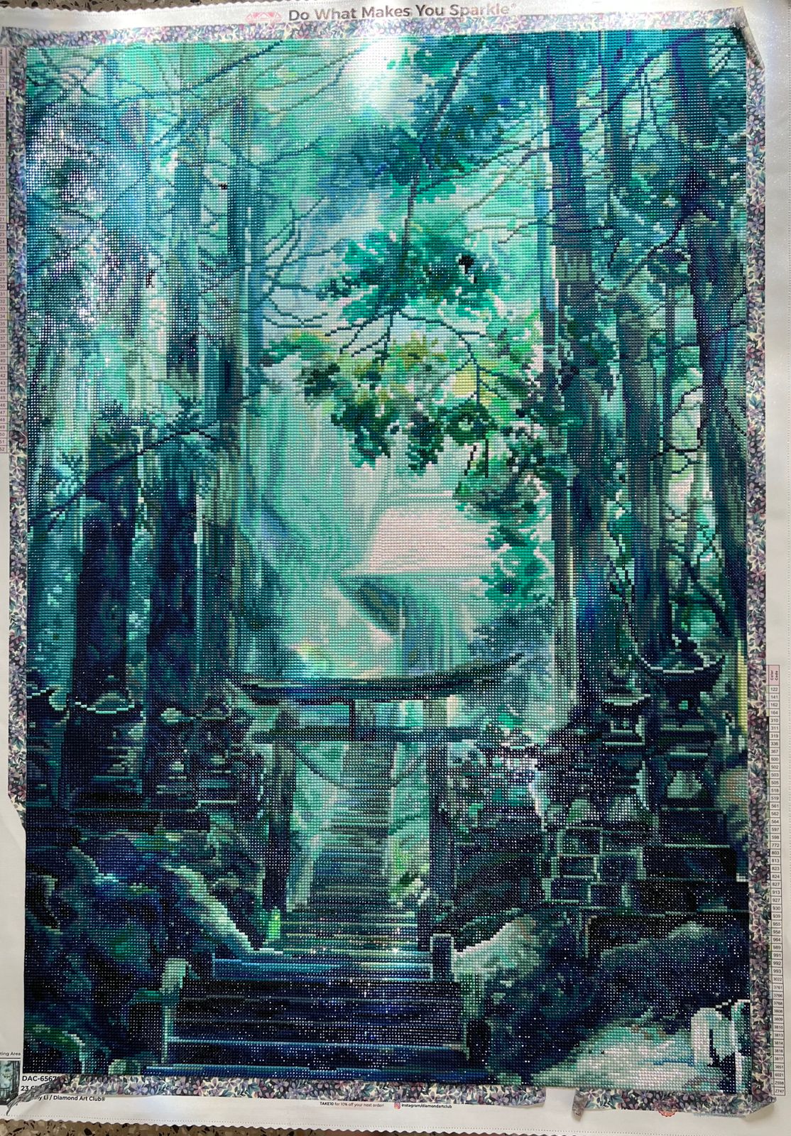I loved working on this kit. I just loved all the green color and the stairs. The drills were great and the picture calming. The end result is beautiful.