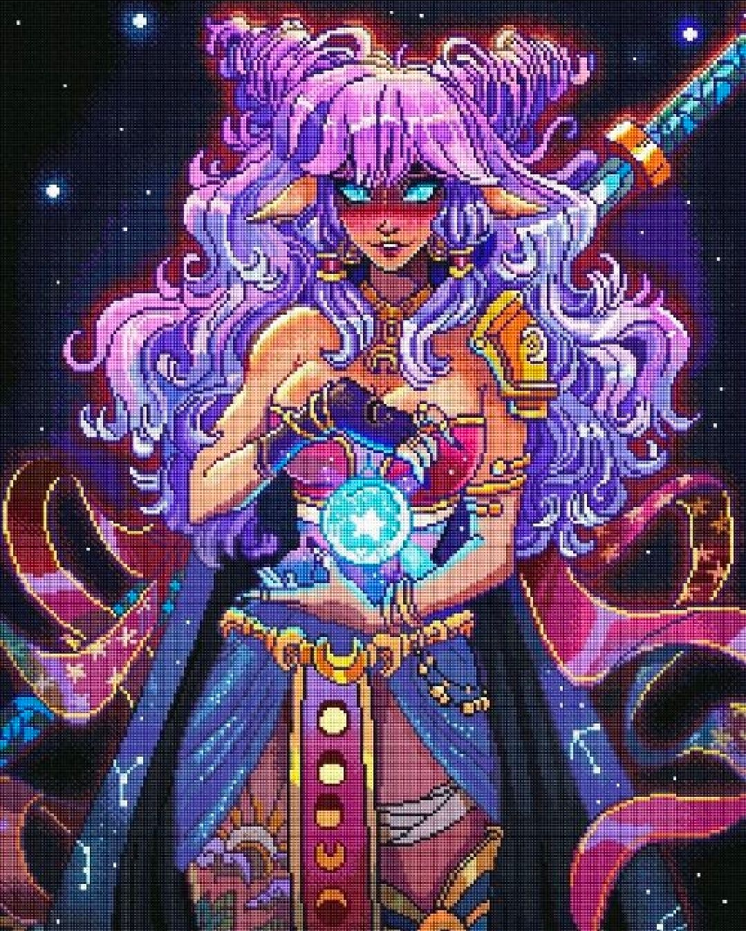 Diamond Painting Psychic Moon Warrior 22" x 29" (55.8cm x 73.7cm) / Square with 88 Colors including 1 AB and 1 Electro Diamond and 1 Frosted Diamond and 4 Fairy Dust Diamonds / 66,304