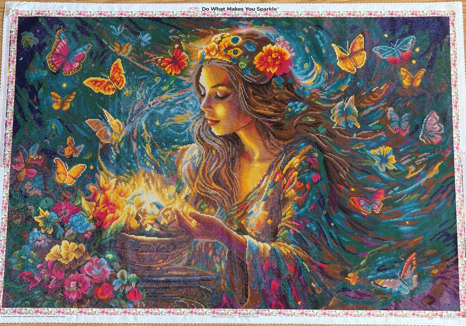 This was the biggest diamond painting I have done so far and I feel truly accomplished. It is very gorgeous though, so definitely worth the time and effort to complete it. (Just take it one small square at a time if you’re worried) A good balance of color blocking and confetti too.