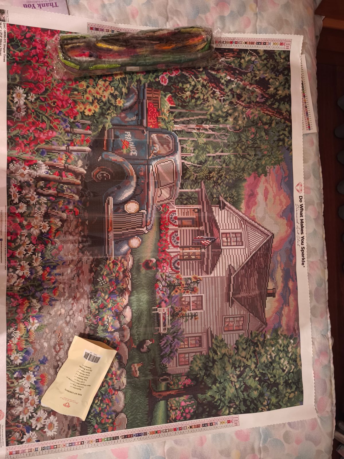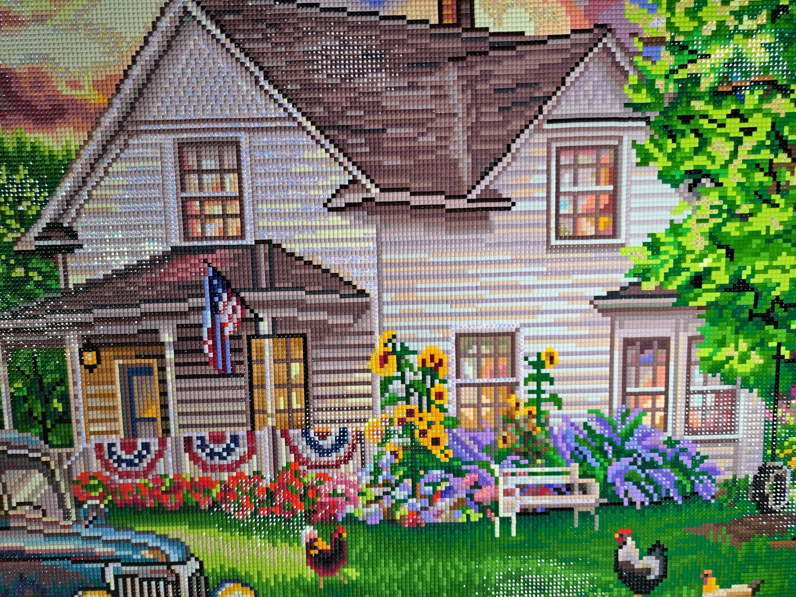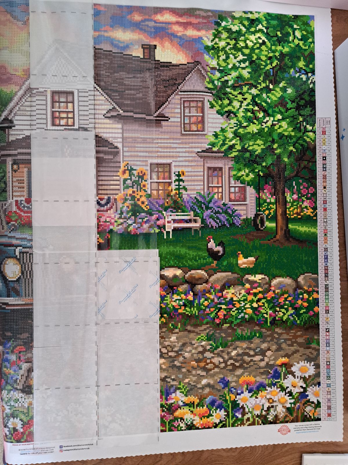 I’m so in love with how DAC has such amazing details within the canvas. The chickens, white bench.. even the rust on the truck makes it so gorgeous. I’m so excited about starting this one. I have the pumpkin one too that is the same house and truck during Autumn. I plan to swap them out seasonally.
