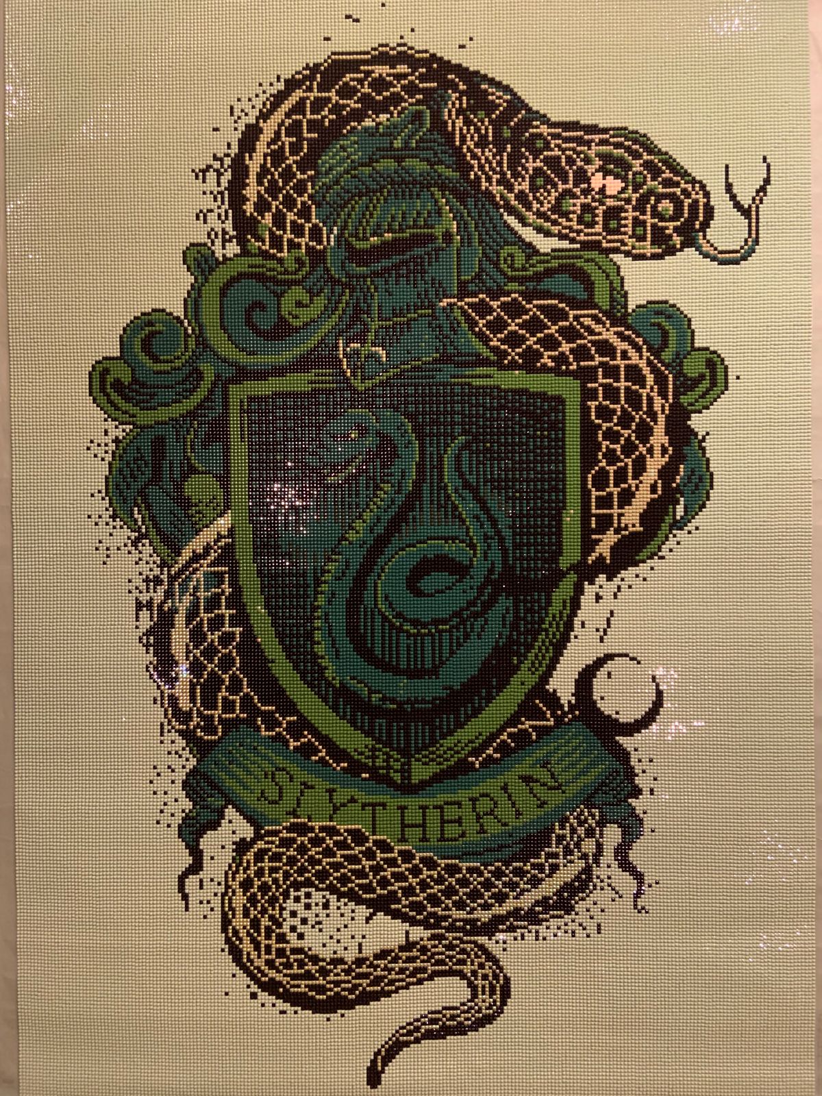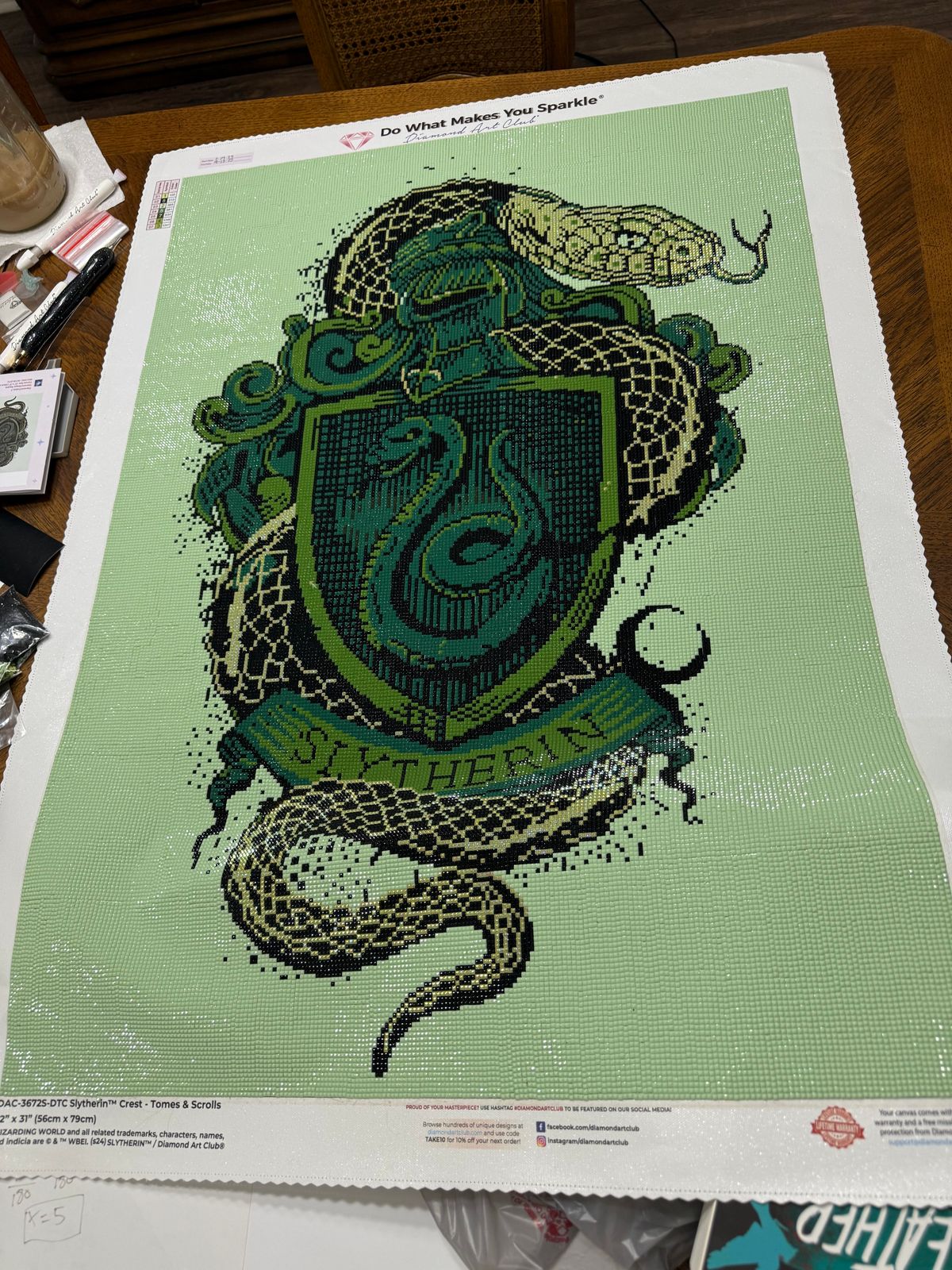 Overall, nice DP. Good quality canvas, glue layer was good. Had some problems with the 310s sticking together, and the background drills being cupped and not sticking at all, but that was minor. Color palatte for the DP was coherent and worked well together. There were some artifacts that looked weird (I assume from computer charting) so I "fixed" them. I did not like the original coloring on the head being the opposite color of the body, so I modded it, and it turned out fairly well (apologies to artist). Still, very enjoyable overall, extremely pleased with how its turned out.