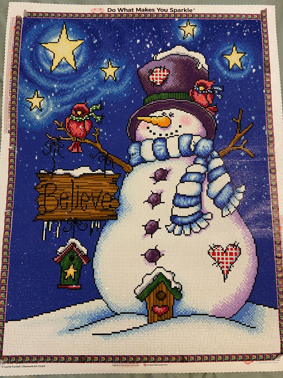 I really enjoyed creating this one. I love a good Christmas snowman. It was quick to finish and I can't wait to display it at Christmas!