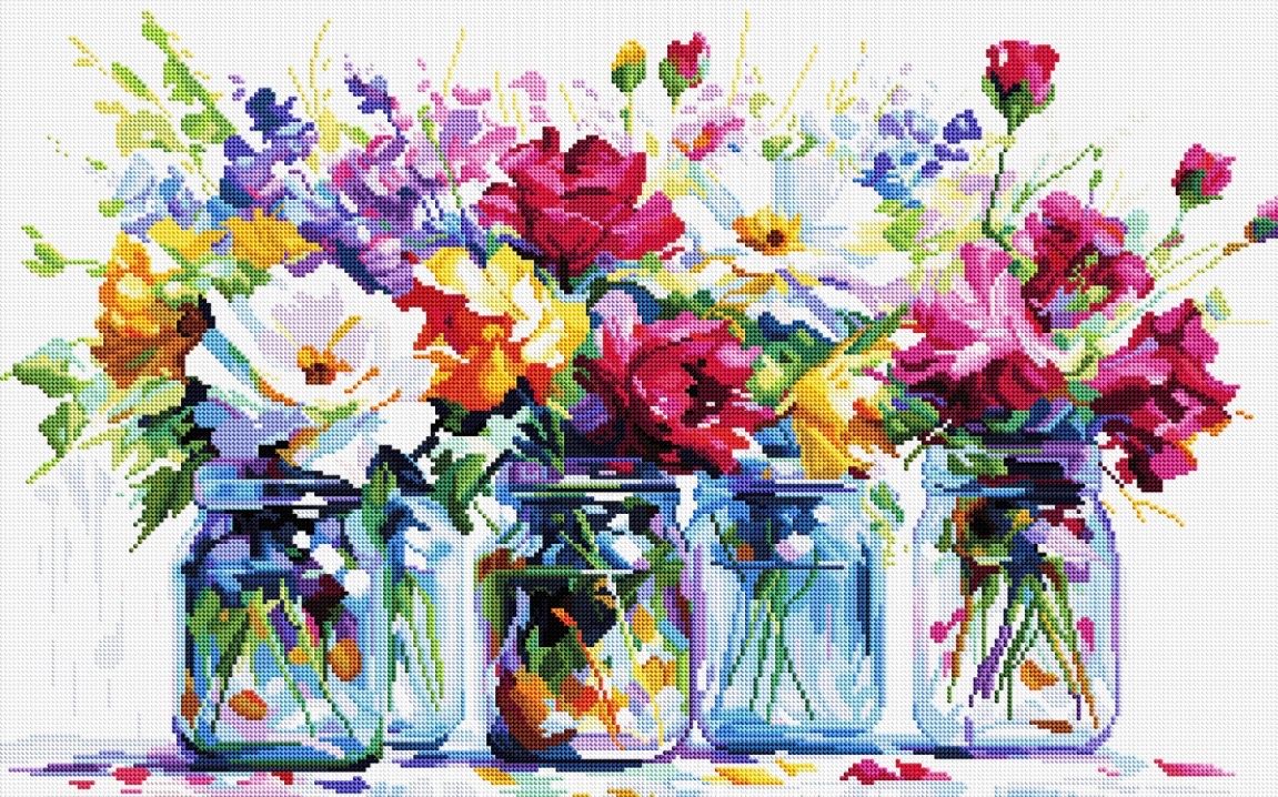 J’adore cette image, un rappel des fleurs de l’été, comme une toile d’aquarelle. Superbes couleurs, diamants ronds brillants.