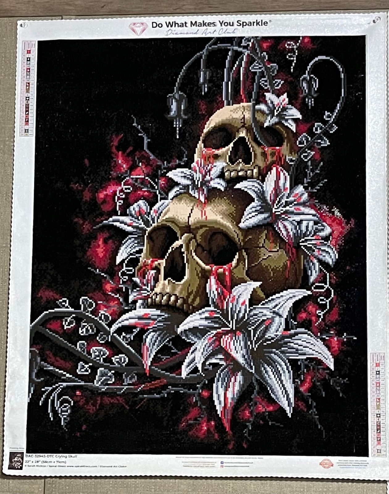 I really enjoyed this one even though I was slightly intimidated by how much black there was. I spent 61 hours on it and I customized it by adding my sister’s tattoo shop name in the upper left corner. She absolutely loves it and I loved making it for her!!
