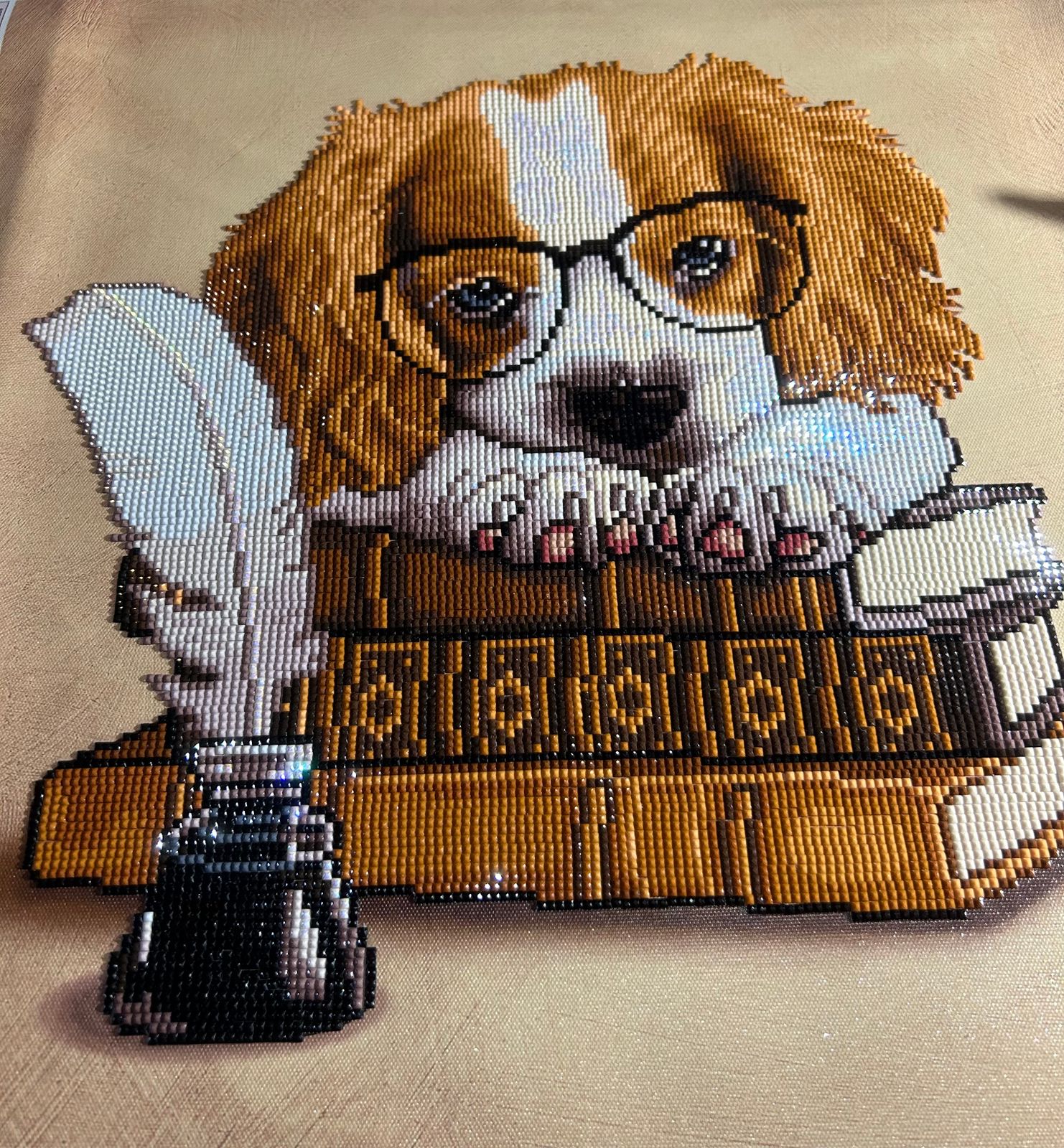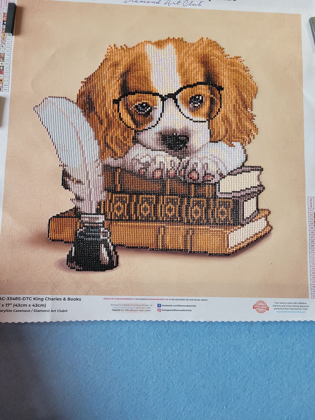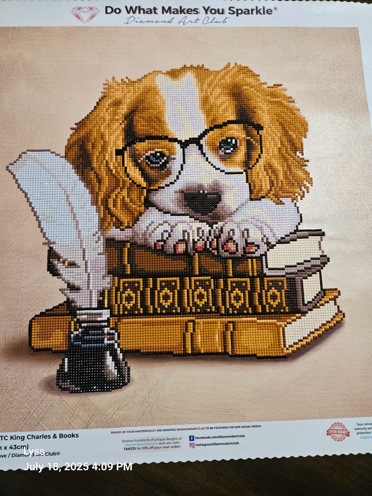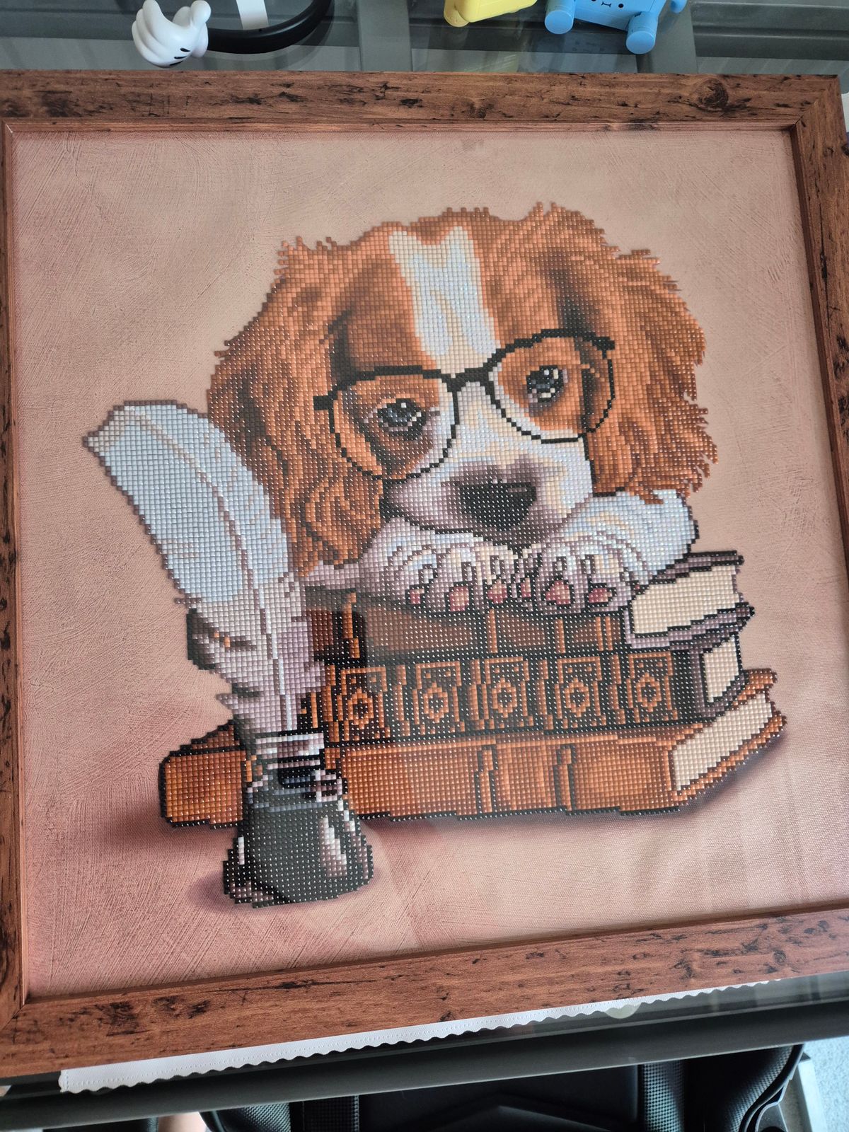 Absolutely loved this painting. The puppy looks just like my King Charles pup. I bought this to complete and hang up in my room. The colors are beautiful. I’m very pleased