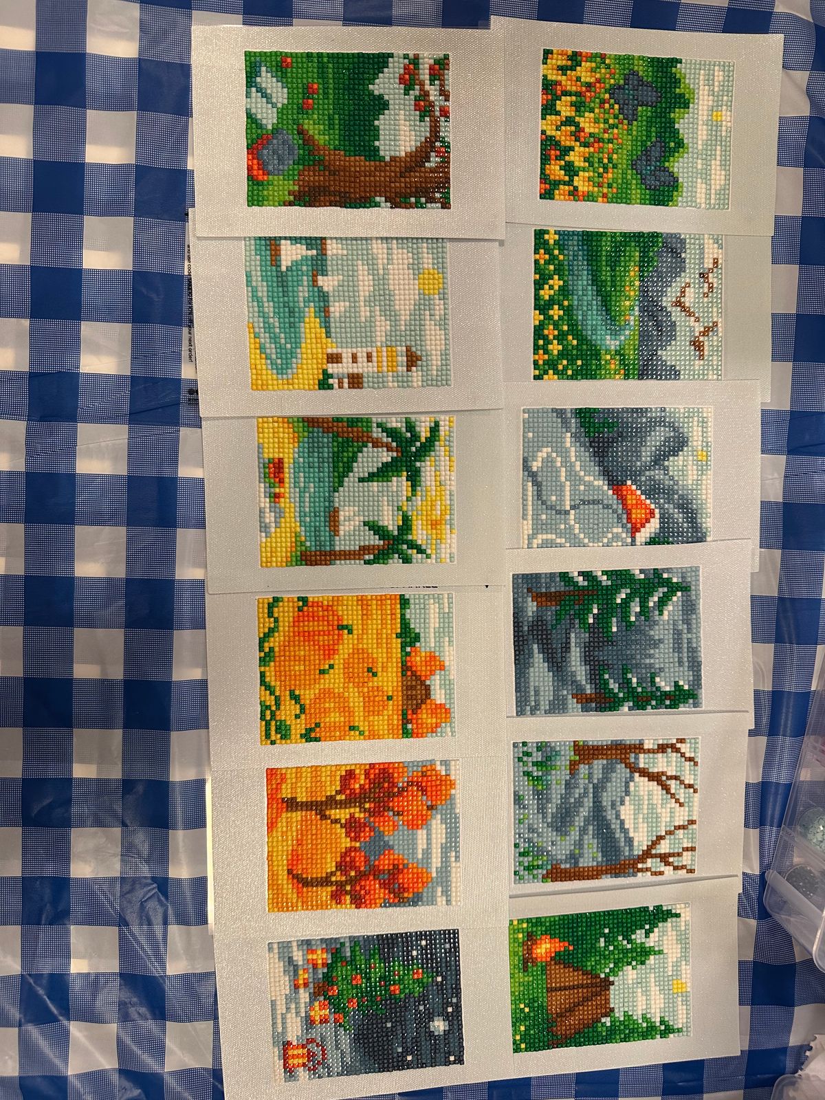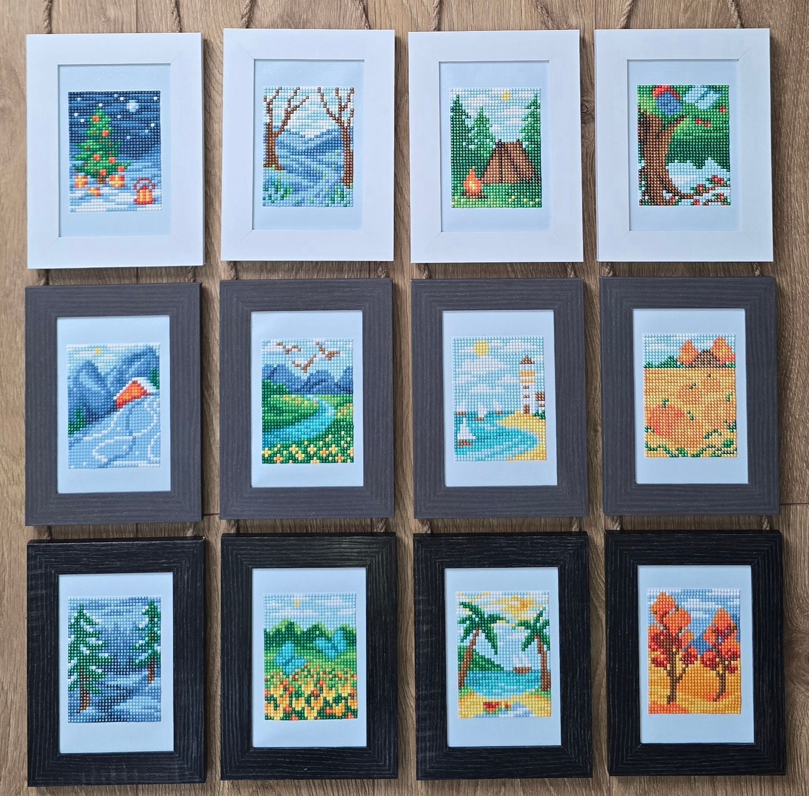 Great set of 12 mini diamond paintings — one for each month. Cute designs, vibrant colours, and easy to complete. Perfect for a quick, relaxing project and lovely to display or gift. Excellent quality for the price.