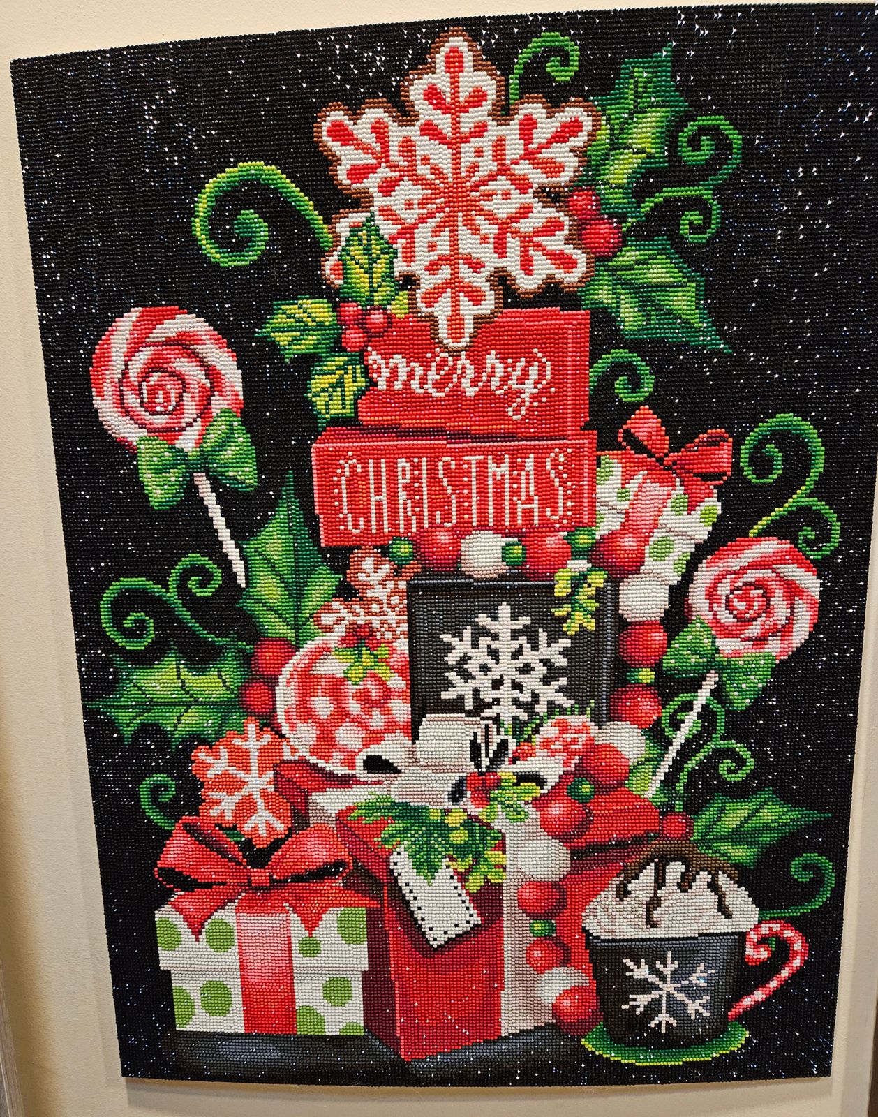 I really enjoyed this one. Lots of bright colors for the holiday season. The black background really makes the colors pop!