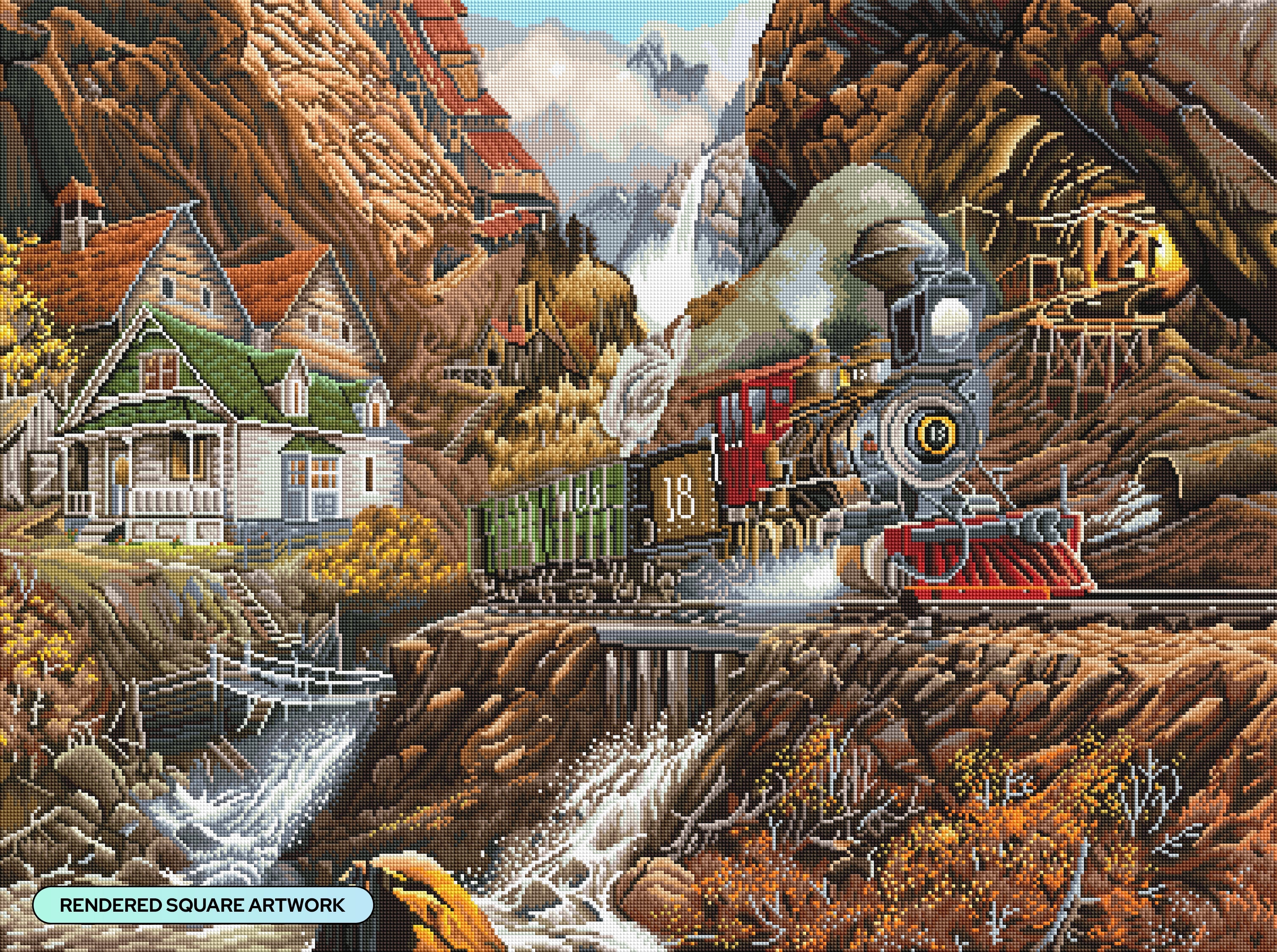 Diamond Painting Rails to Pandora 37" x 27.6" (94cm x 70cm) / Square with 61 Colors including 3 ABs and 2 Fairy Dust Diamonds / 105,937
