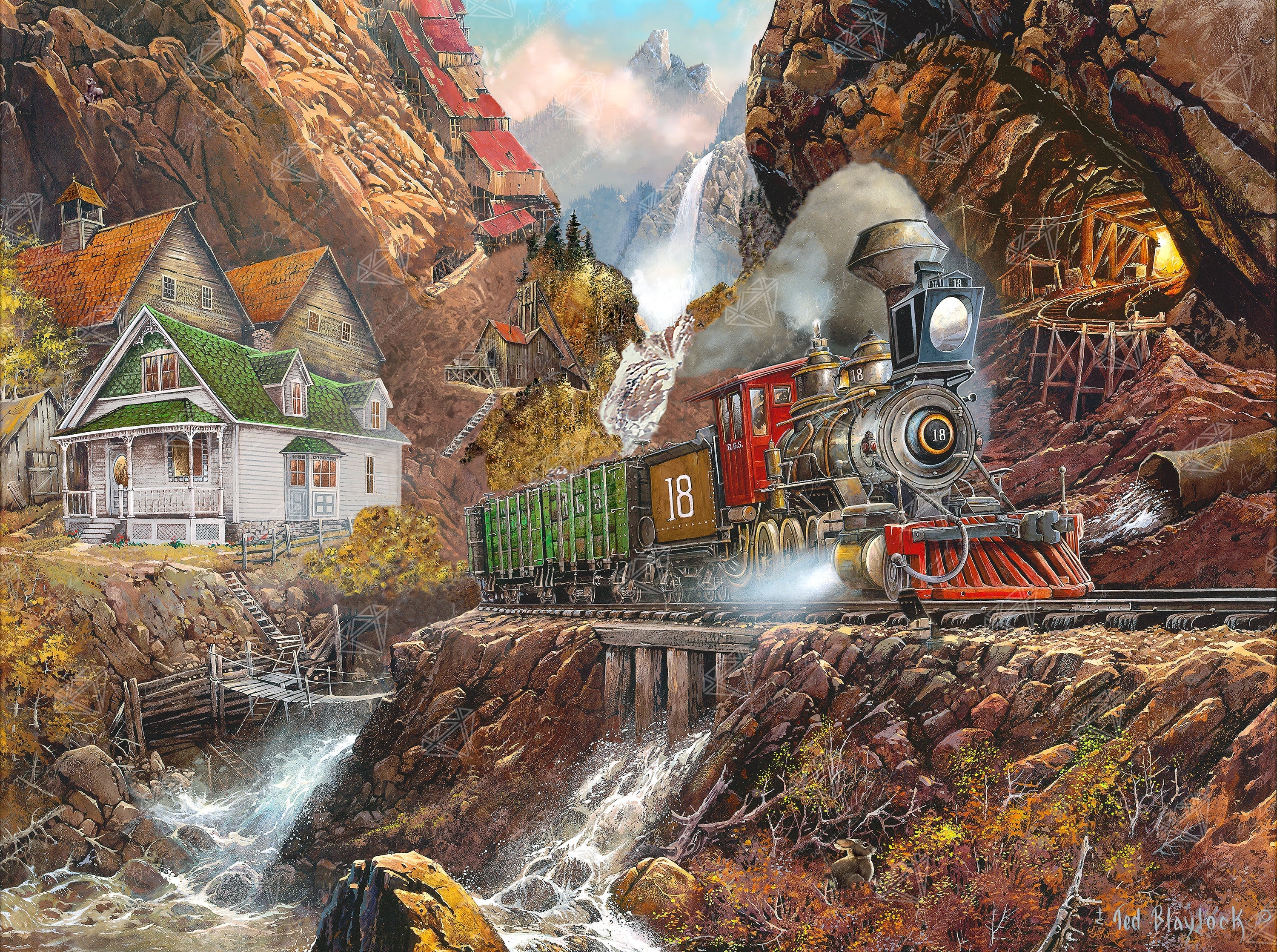 The whole family likes this one, and I enjoyed making it. From what I can gather, this is a painting of the Telluride Branch of the Rio Grande Southern Railroad which operated from 1891-1951 in Colorado to access silver mines; it's always fun when a painting makes me want to learn about something I didn't know before.