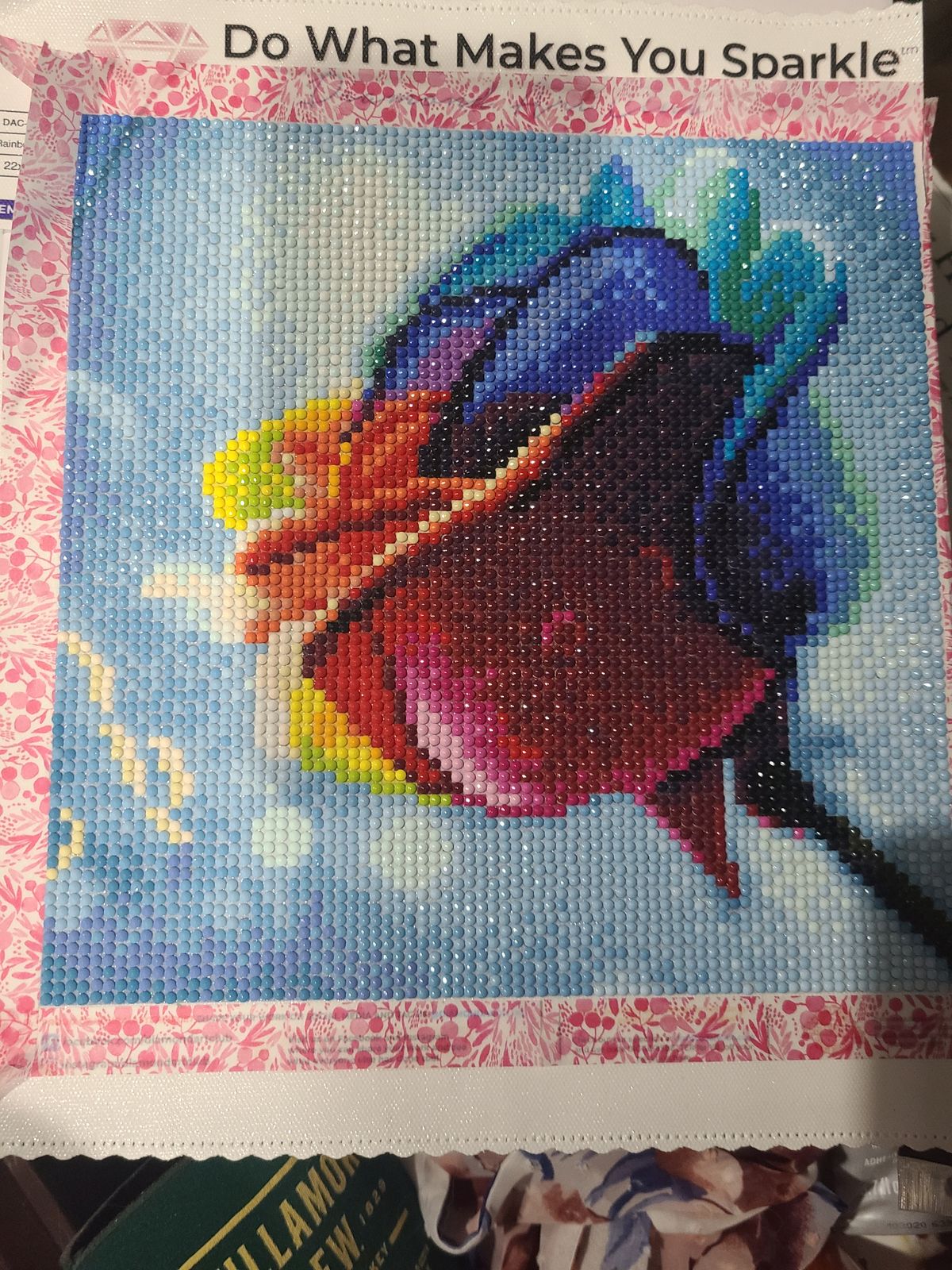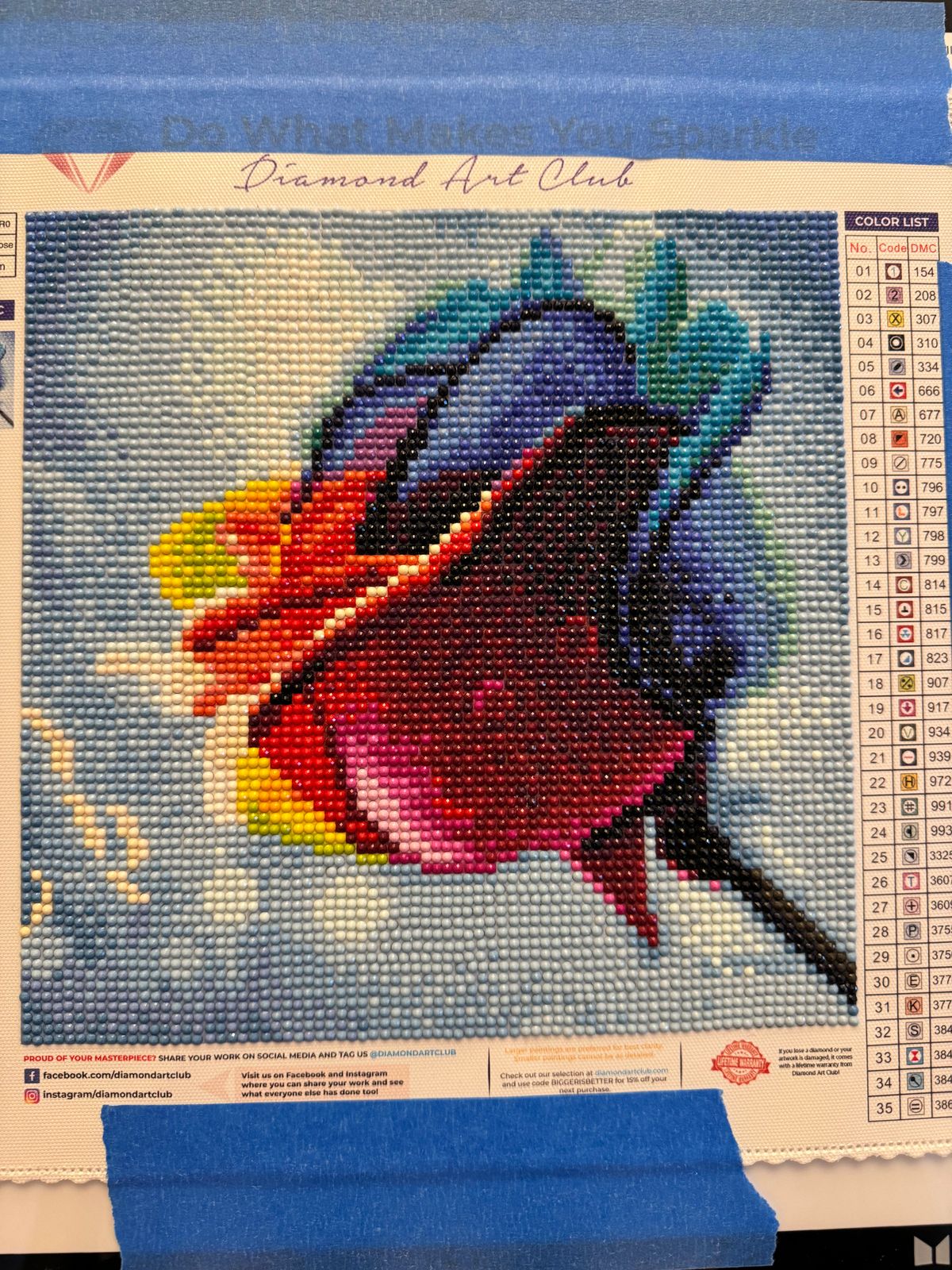 This is a perfect beginner kit for those new to diamond painting- it has tons of fun different colors but the size isn’t too overwhelming. Beautiful finish as well!